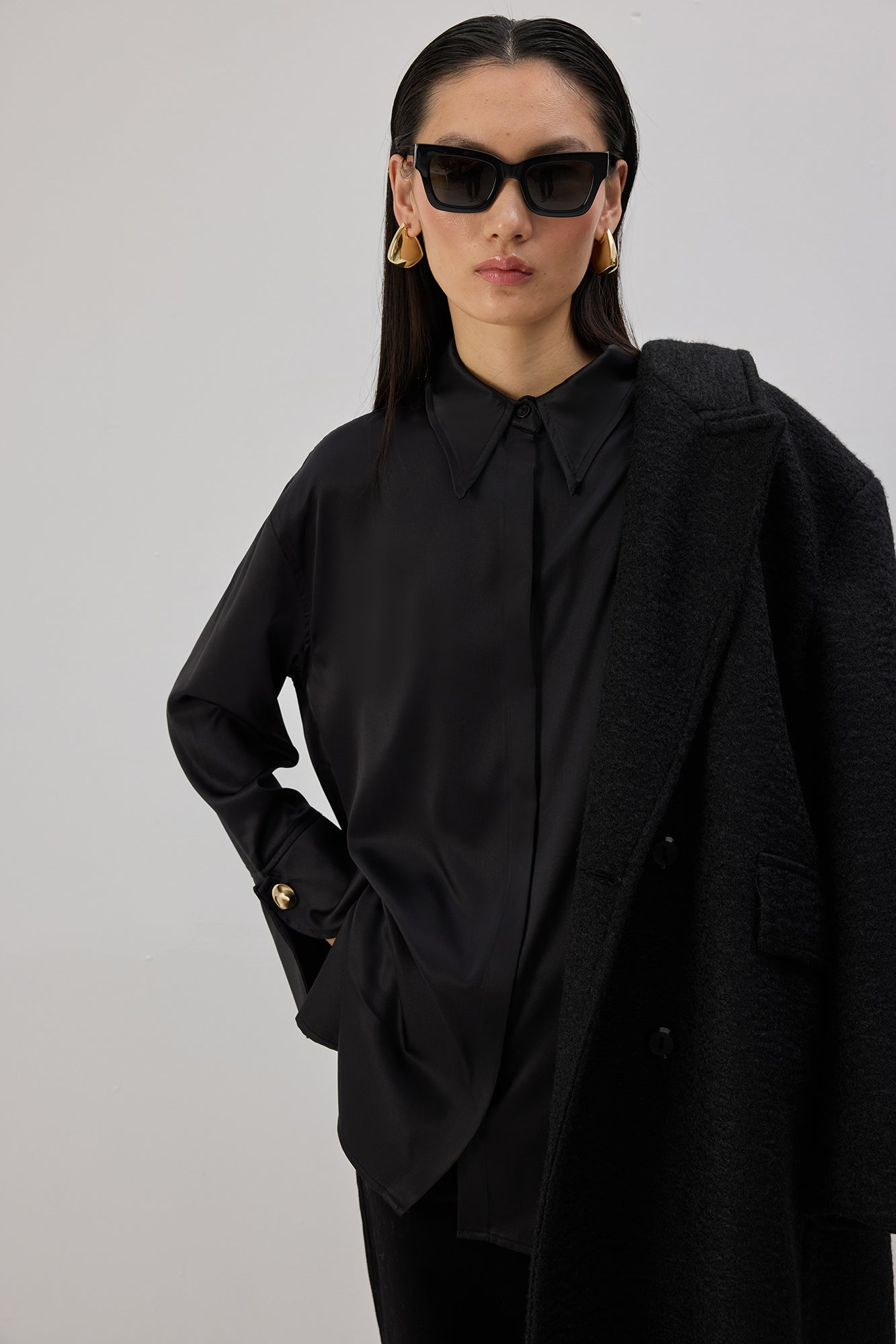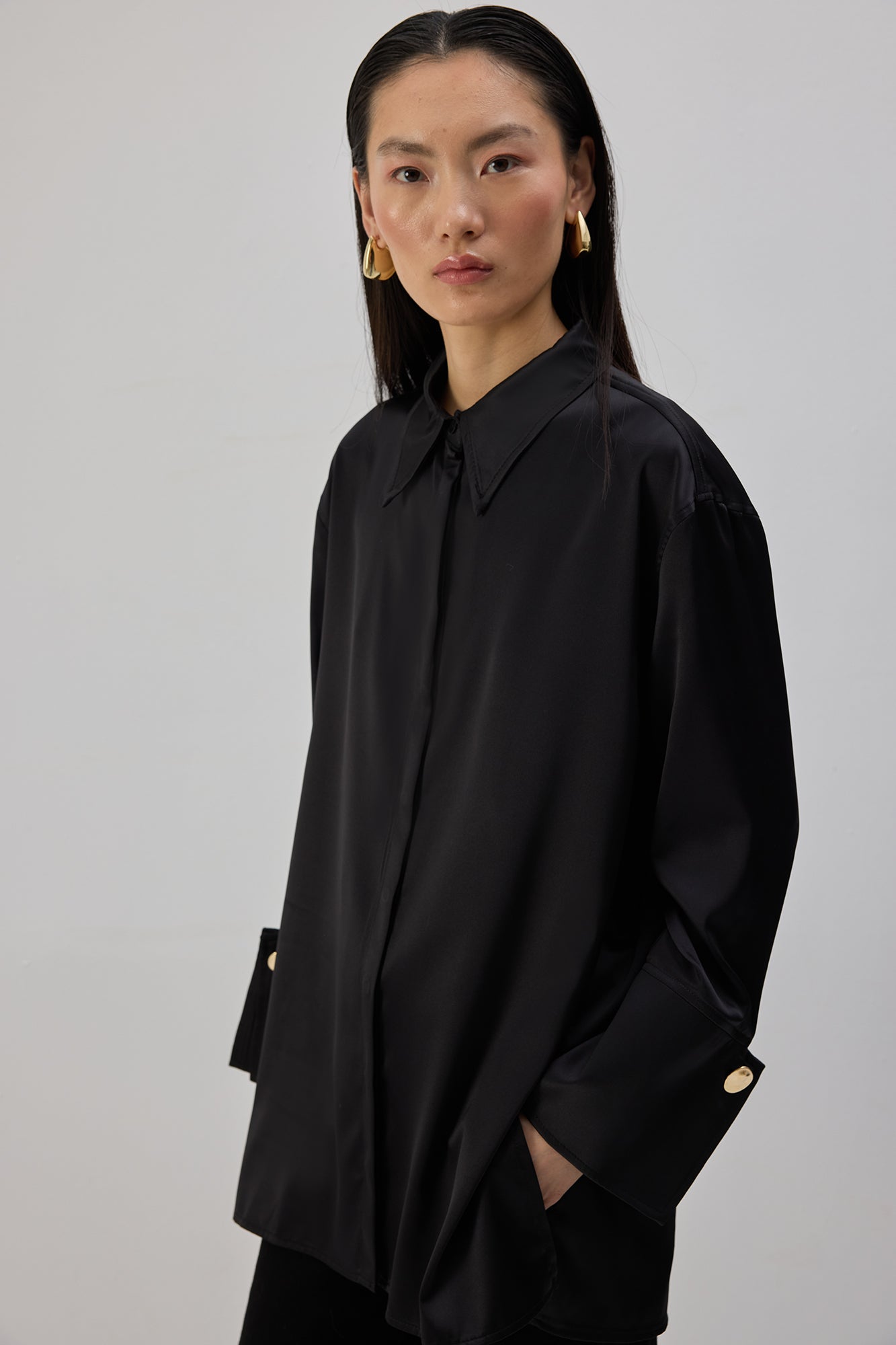 WIDE CUFFED SATIN SHIRT