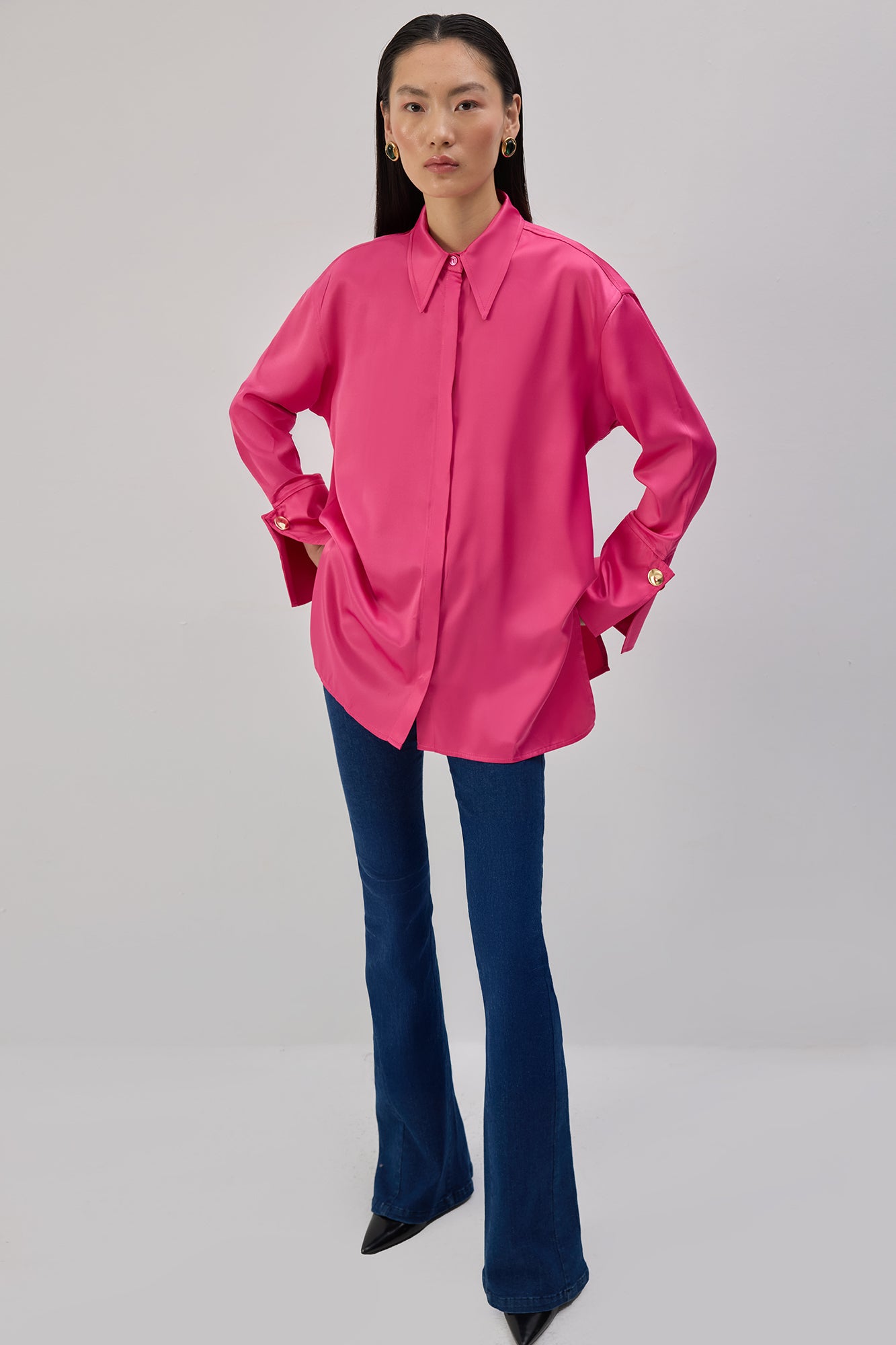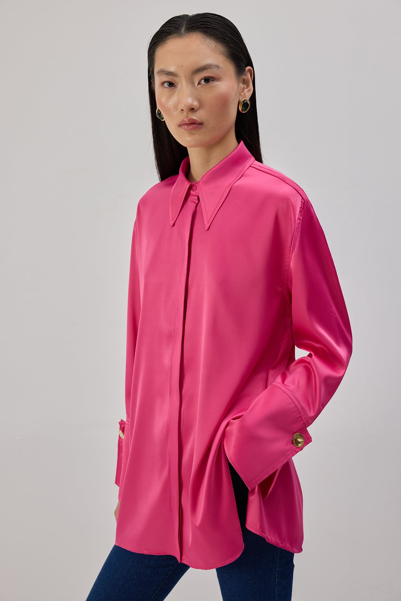WIDE CUFFED SATIN SHIRT