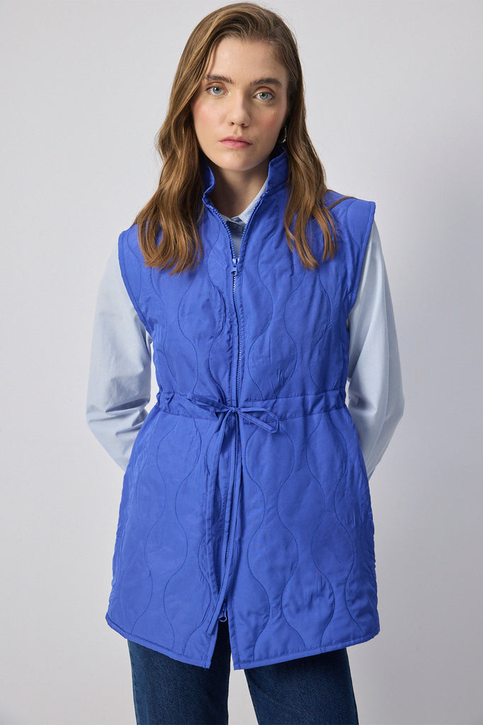 DENIM VEST WITH FRONT POCKET DETAILED BELT