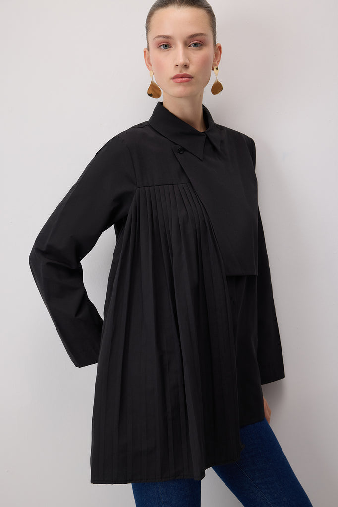 ASYMMETRIC SHIRT WITH PLEAT DETAIL