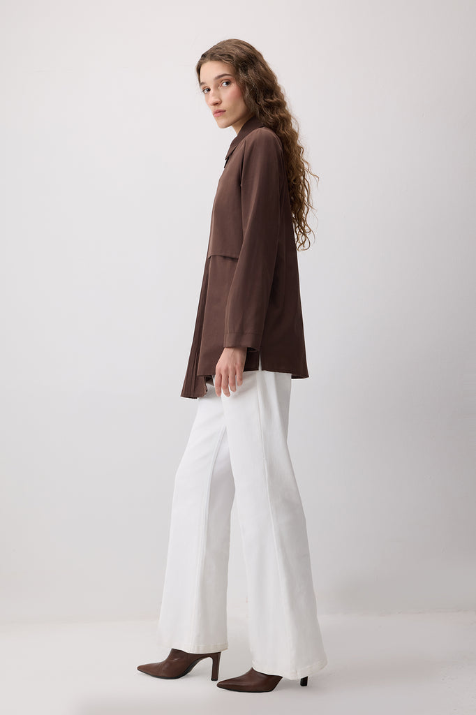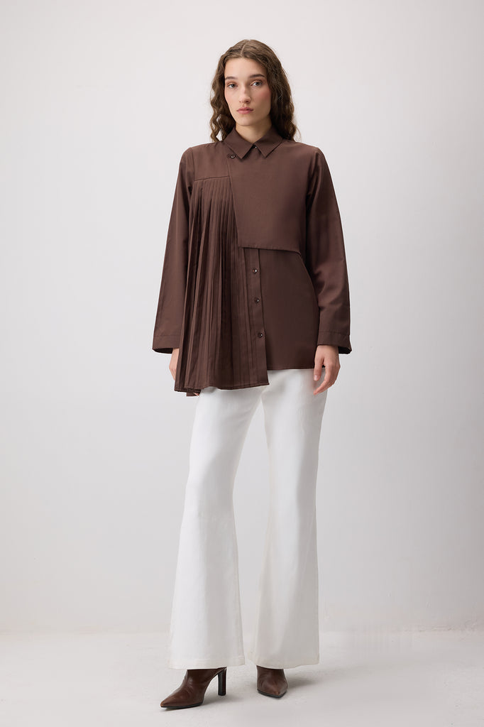 ASYMMETRIC SHIRT WITH PLEAT DETAIL