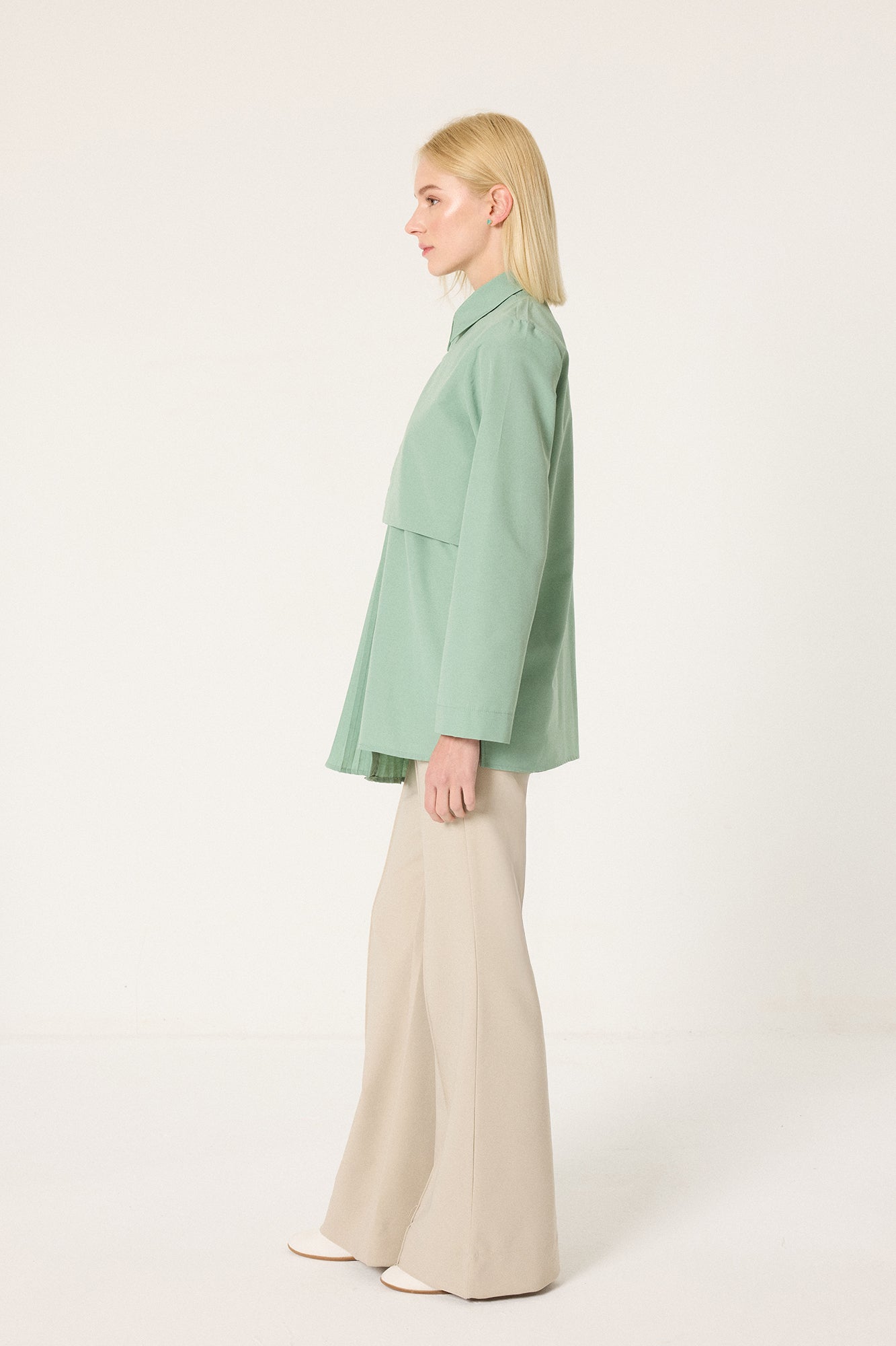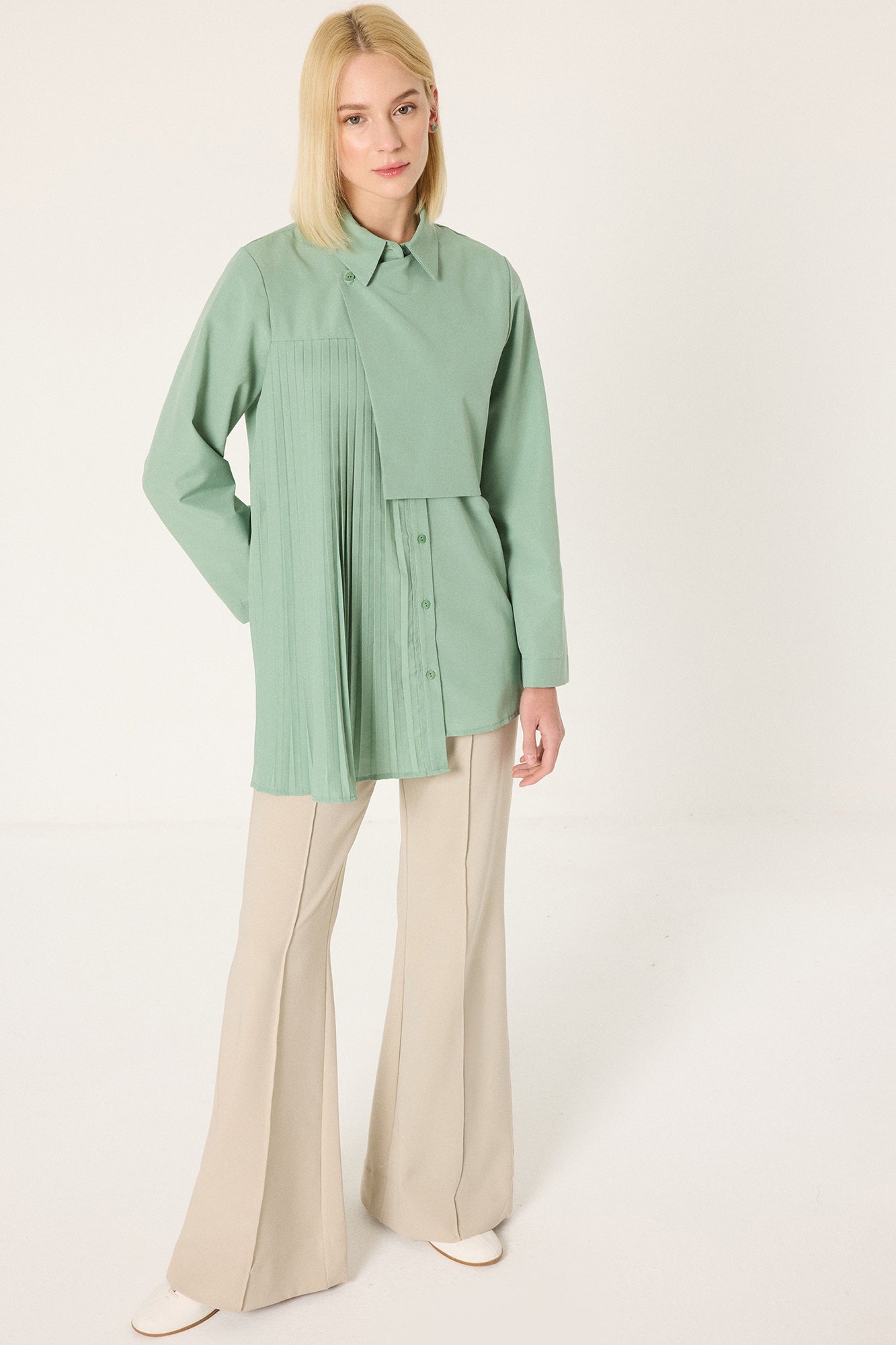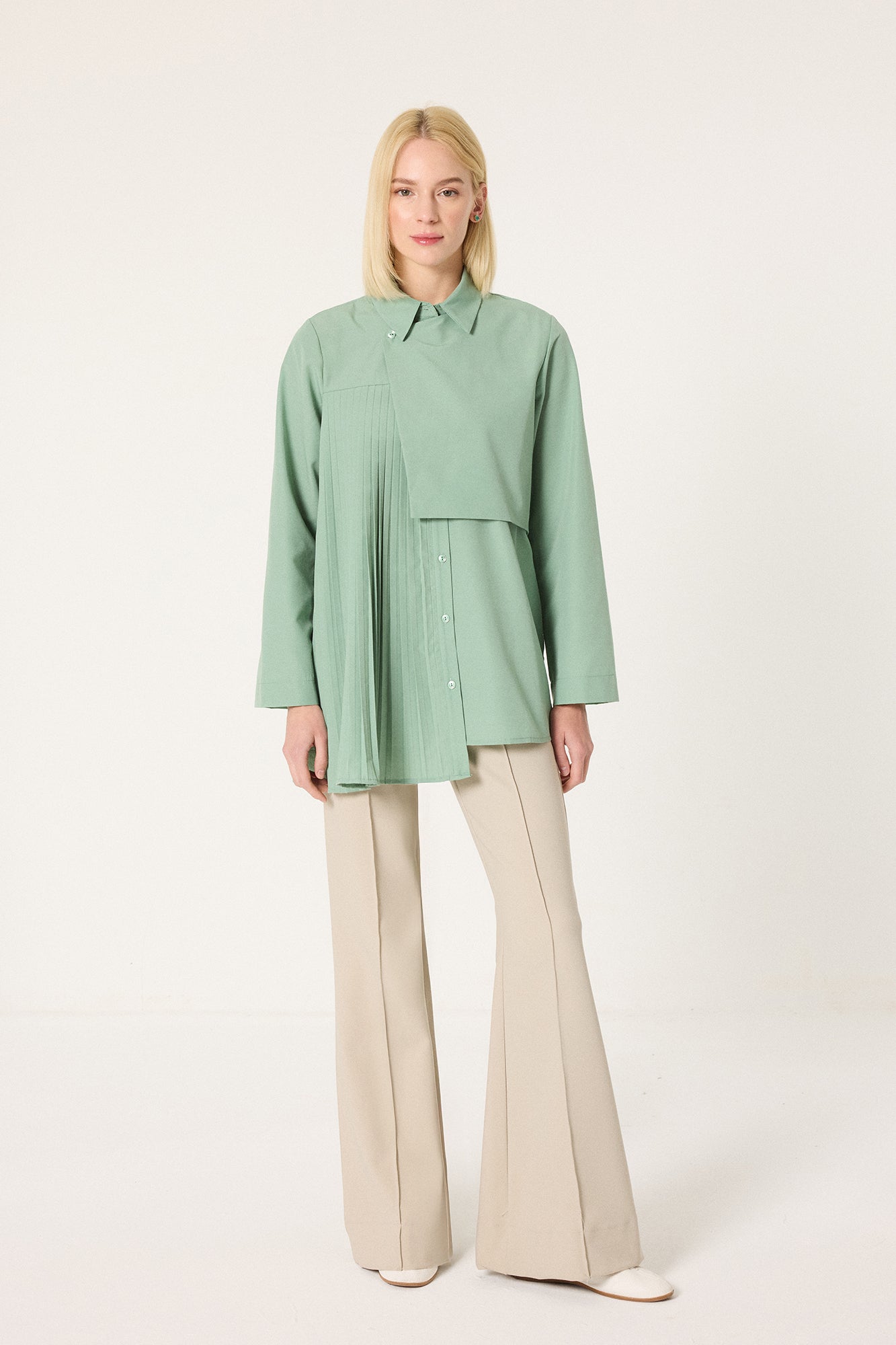ASYMMETRIC SHIRT WITH PLEAT DETAIL