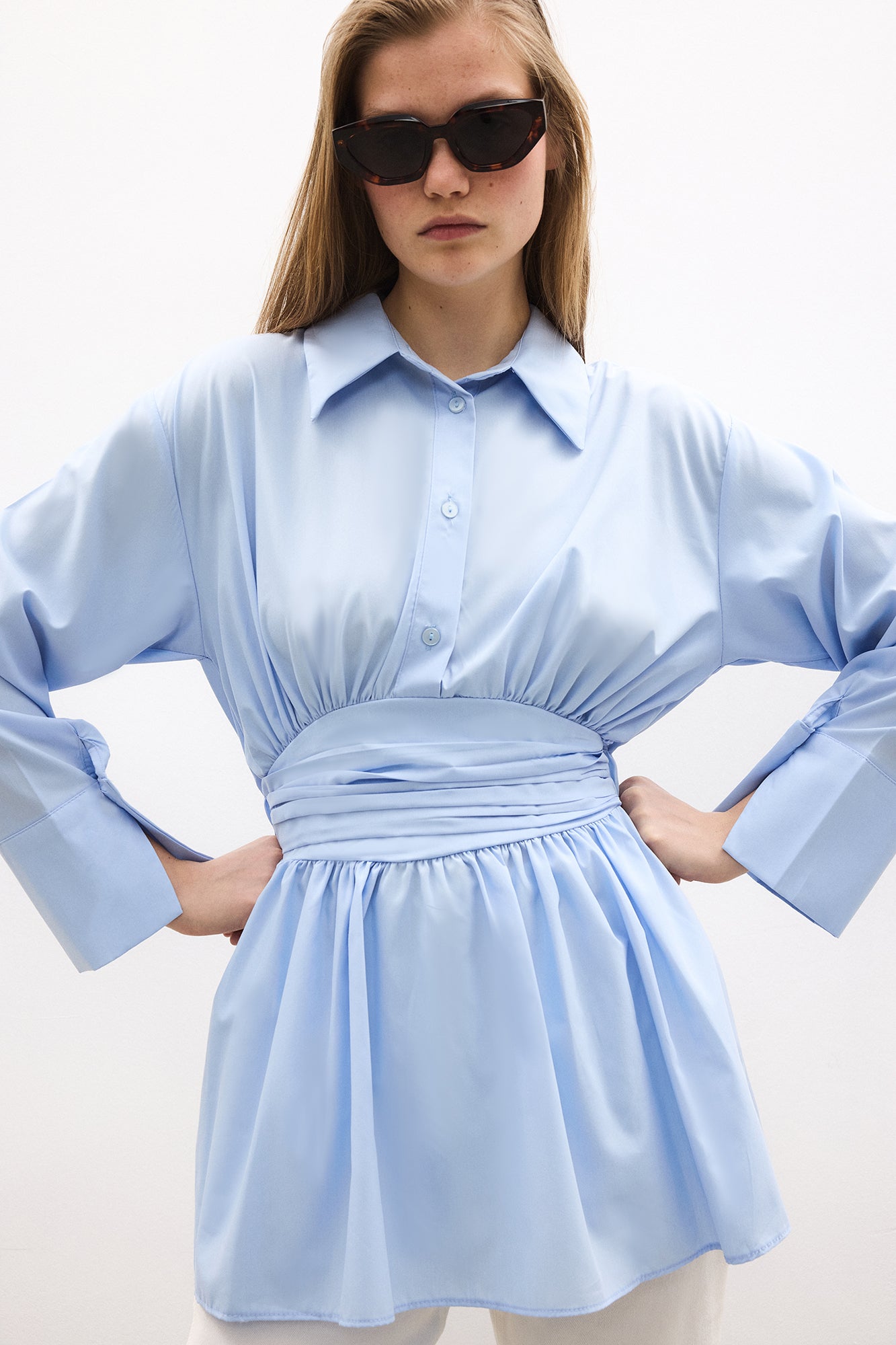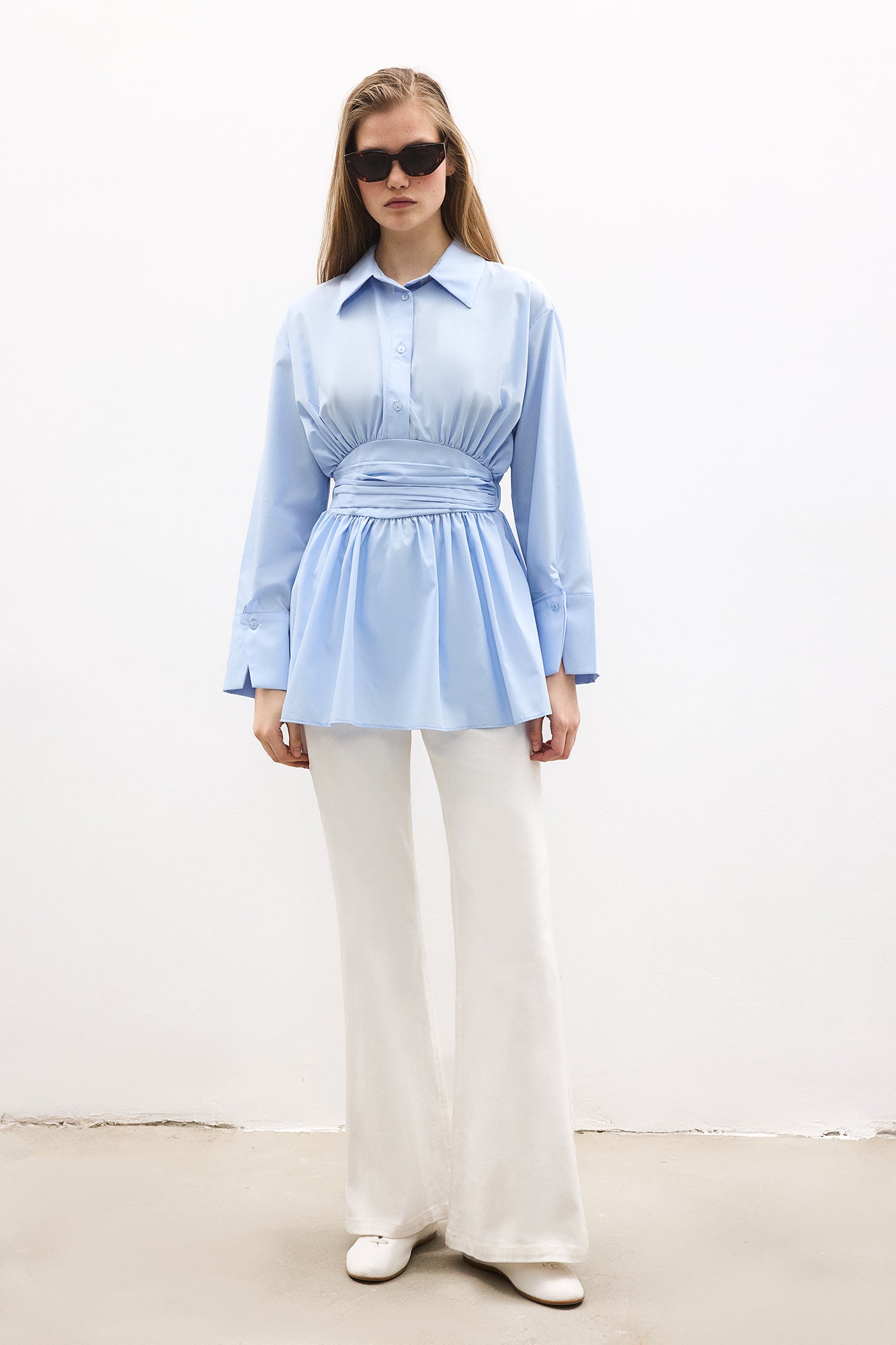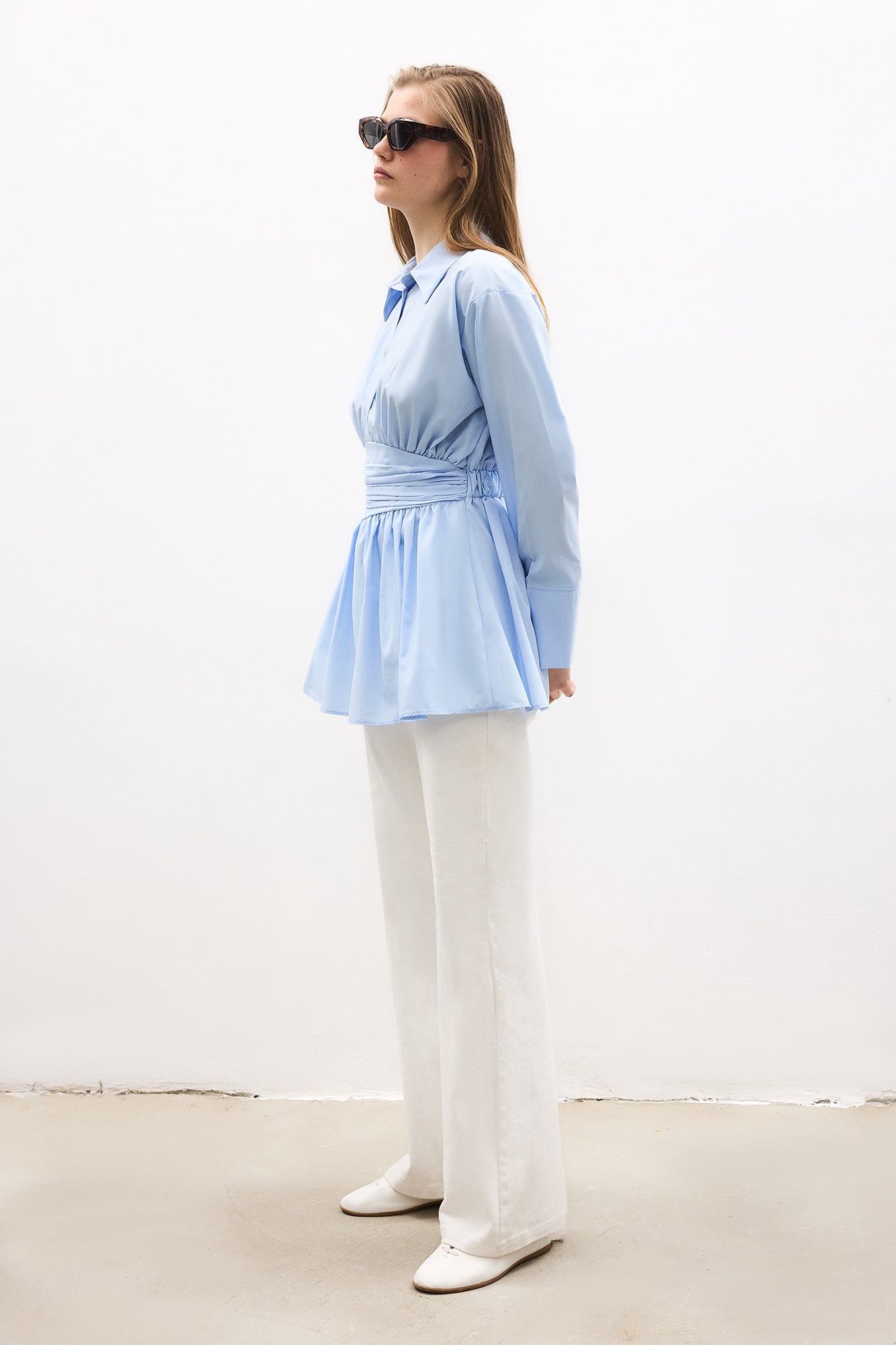 PEPLUM TUNIC WITH CORSET AT THE WAIST