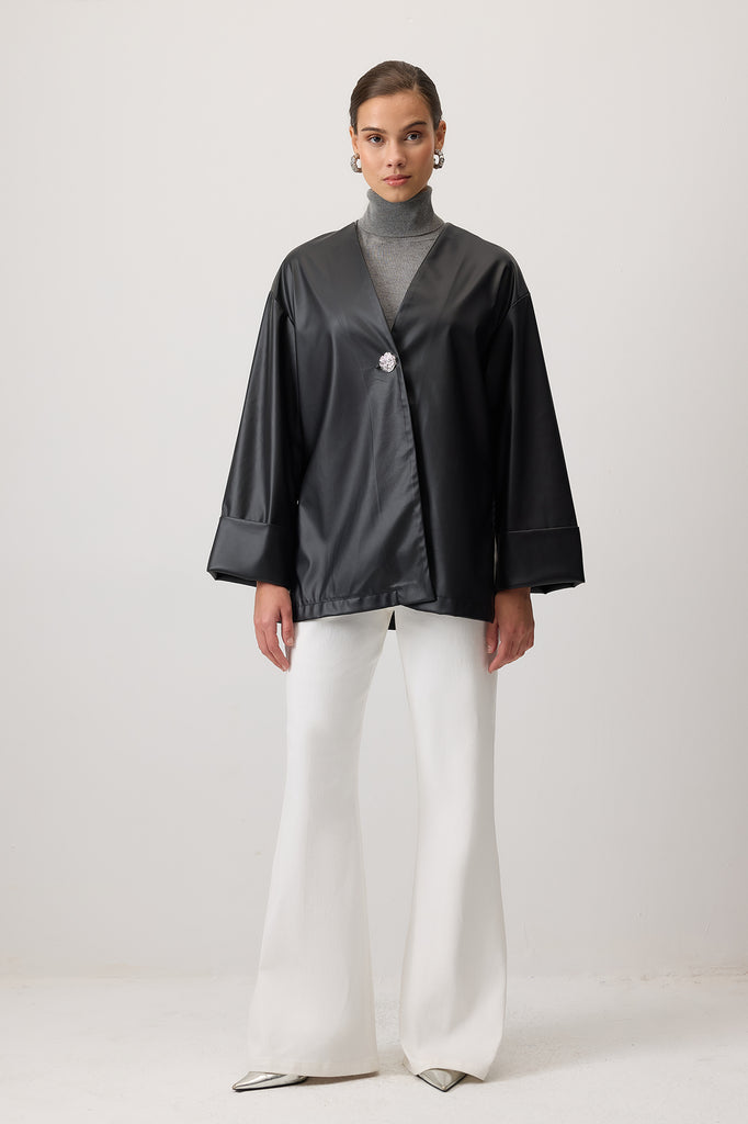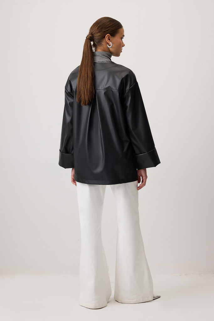 BUTTONED FAUX LEATHER JACKET
