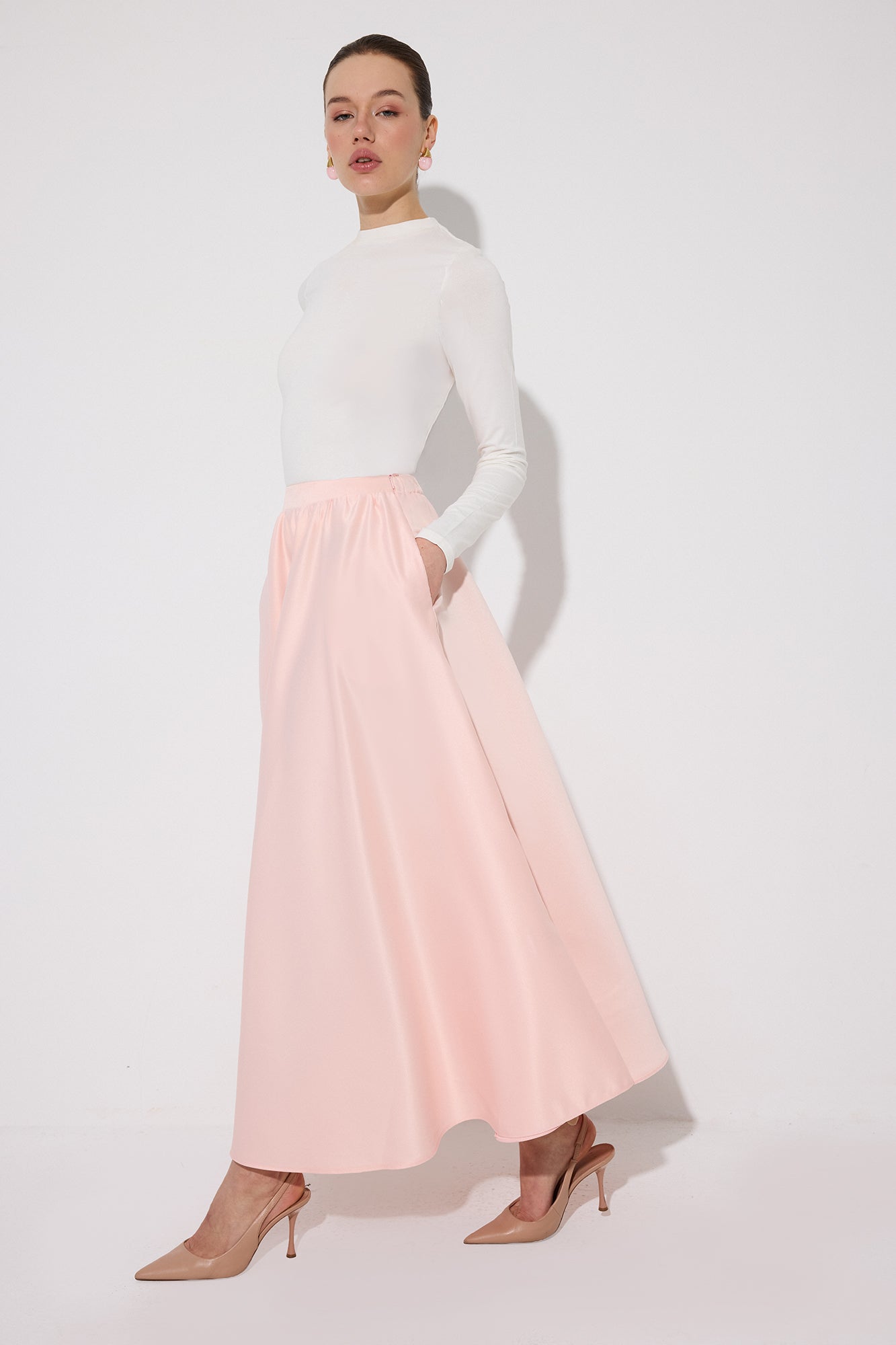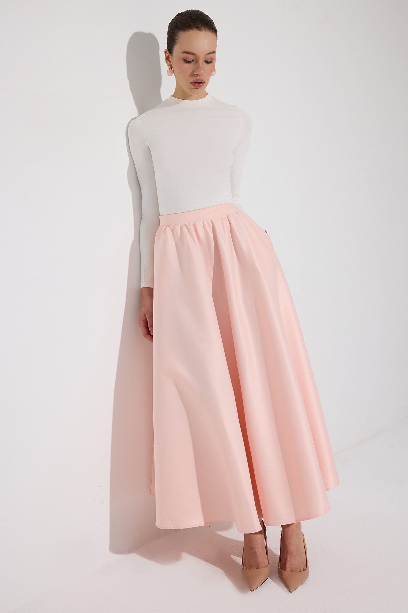 RUFFLED SATIN SKIRT