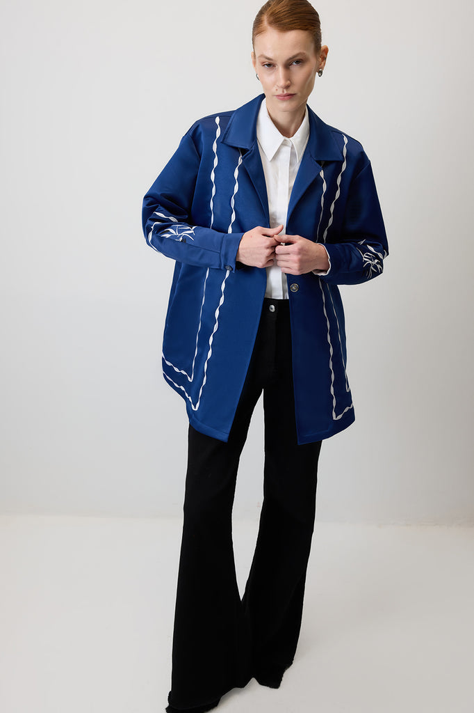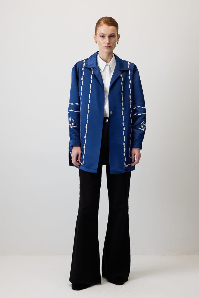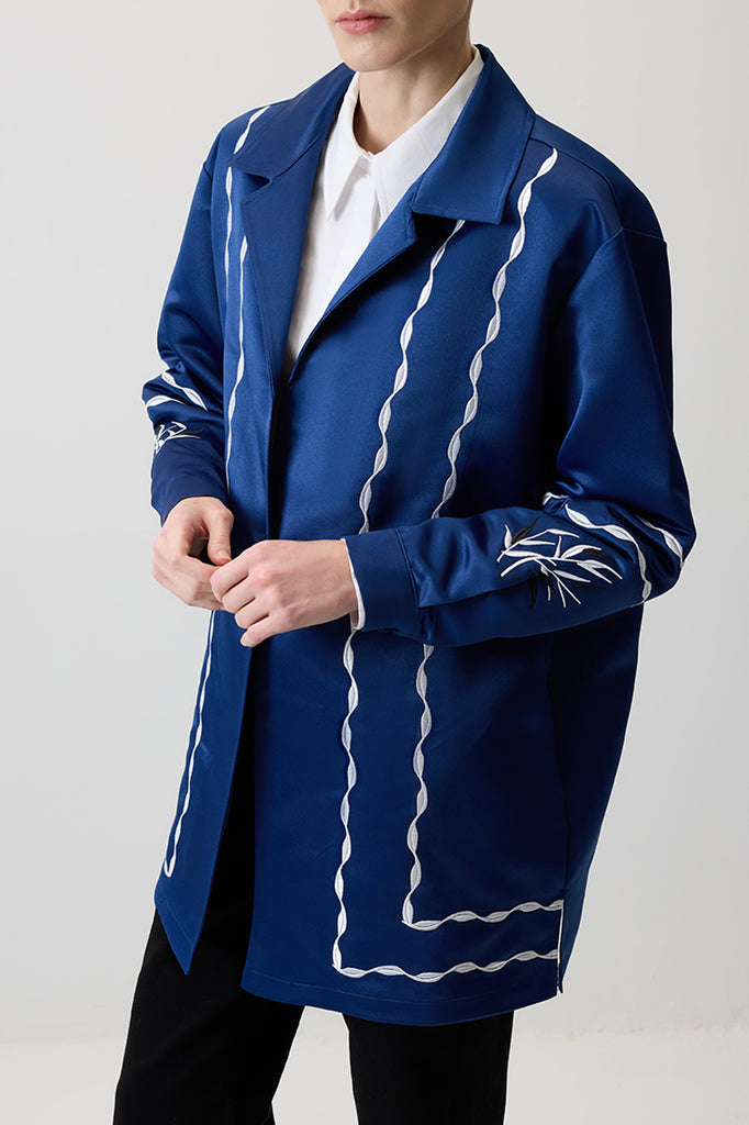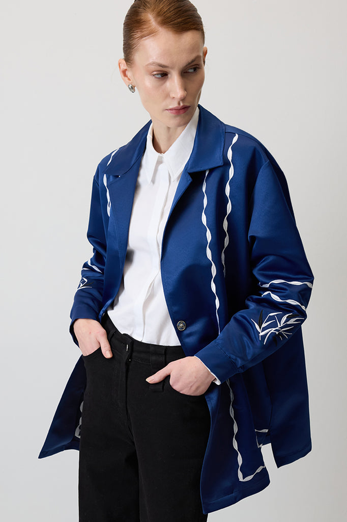CONTRAST EMBROIDERED SATIN JACKET