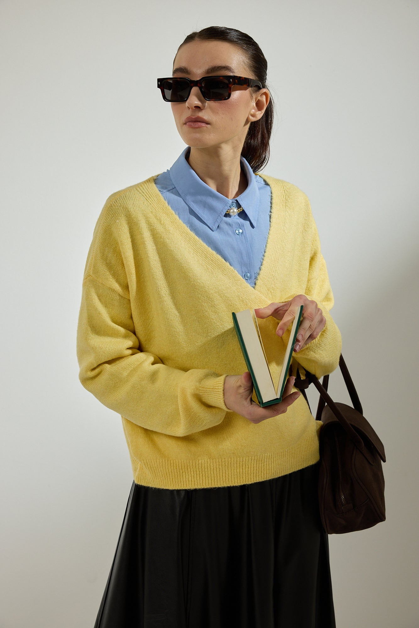 DEEP V-NECK KNITTED CARDIGAN