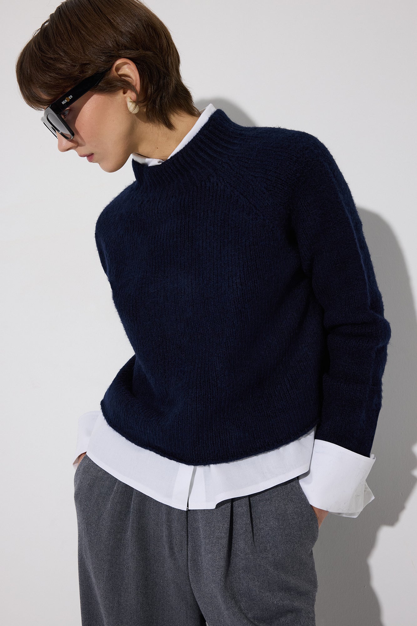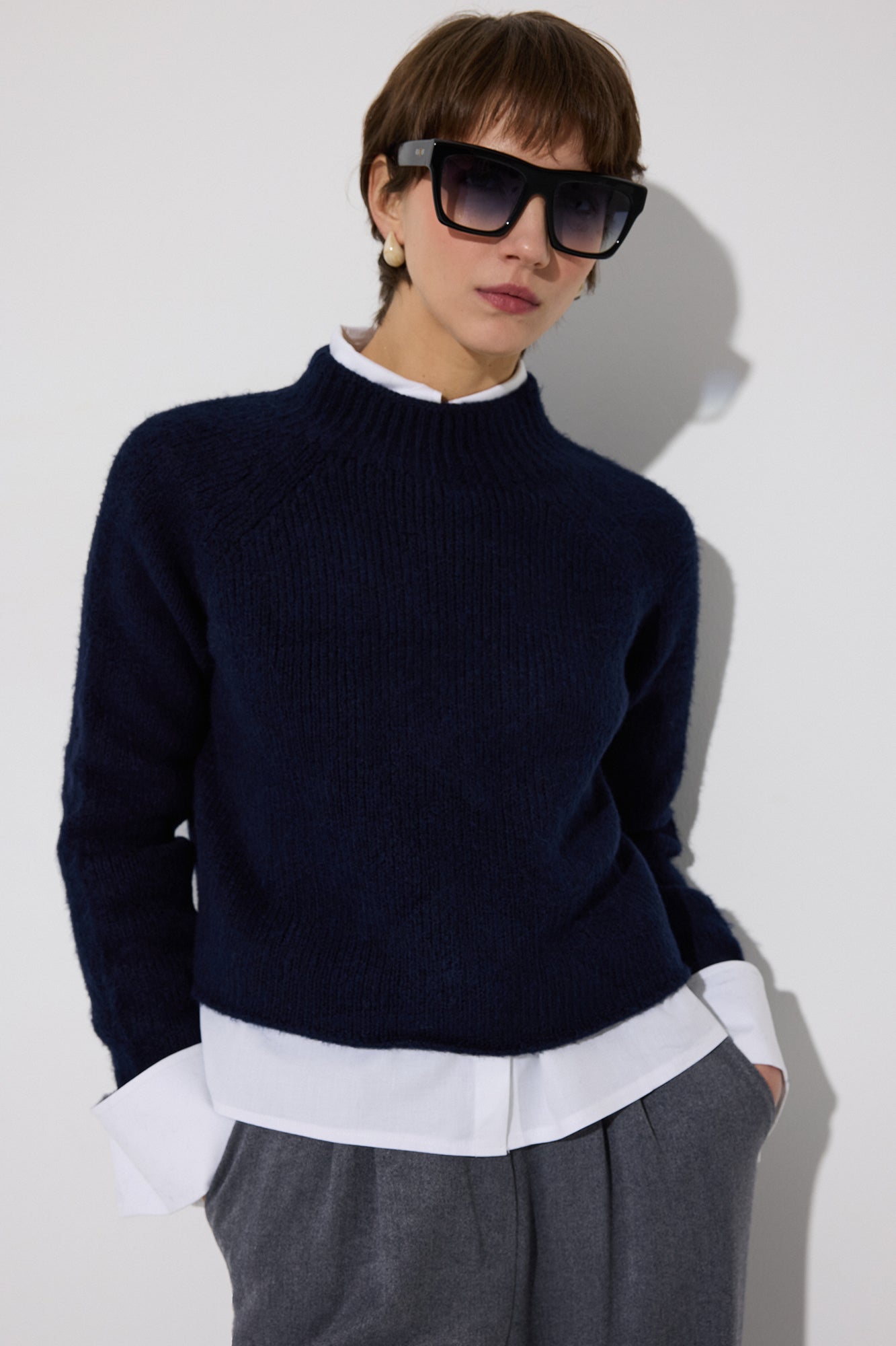 STAND-NECK SHORT KNITTED SWEATER