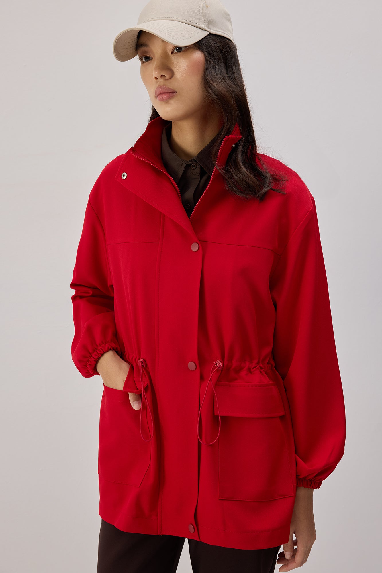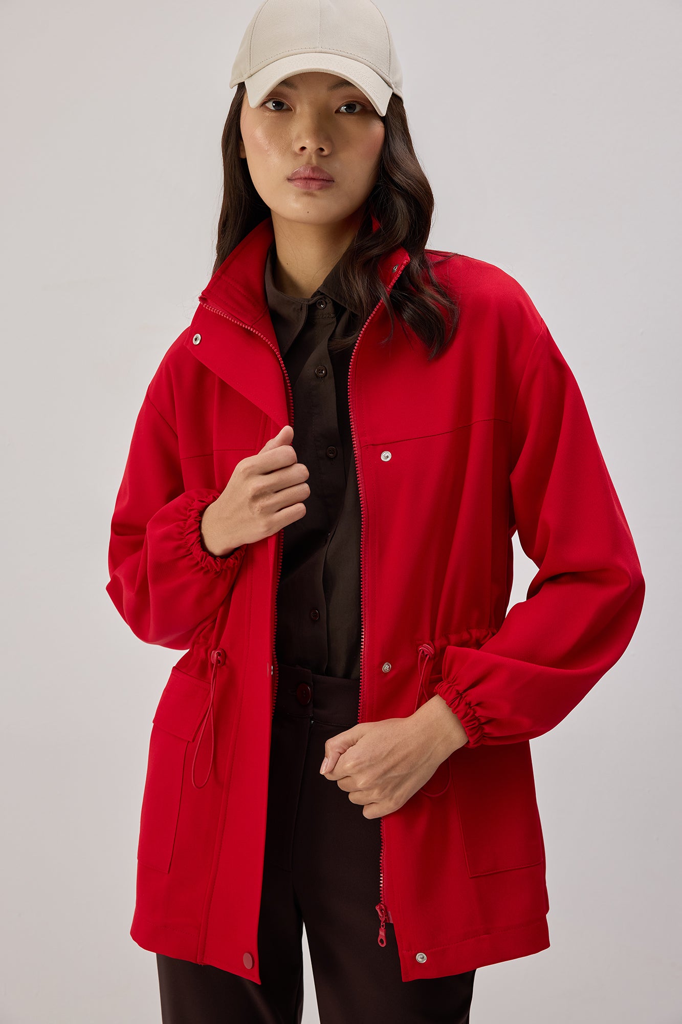 STAND COLLAR ZIPPERED JACKET