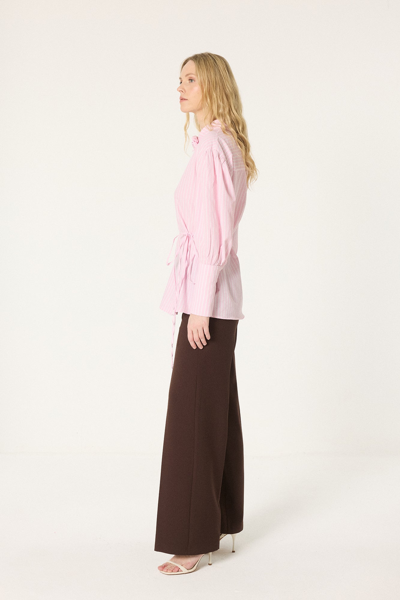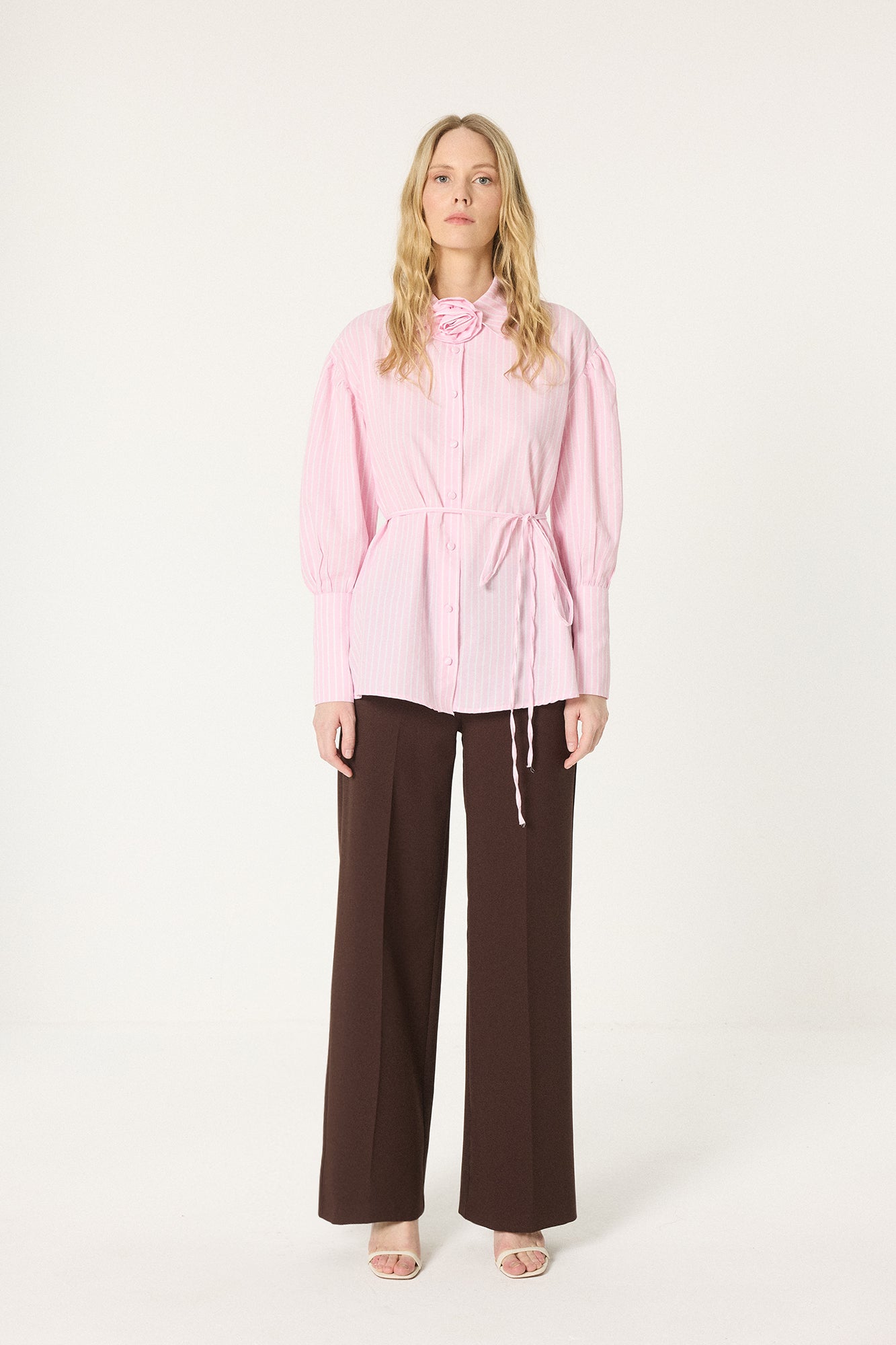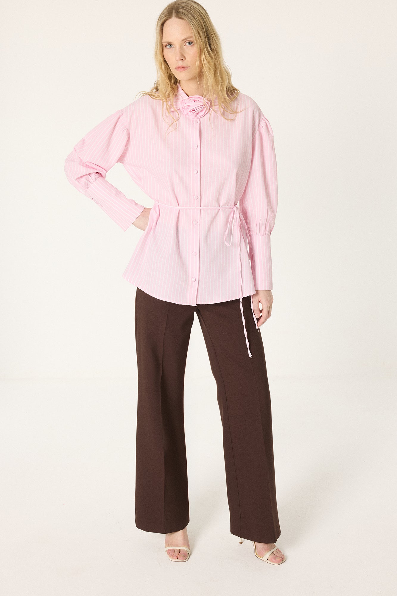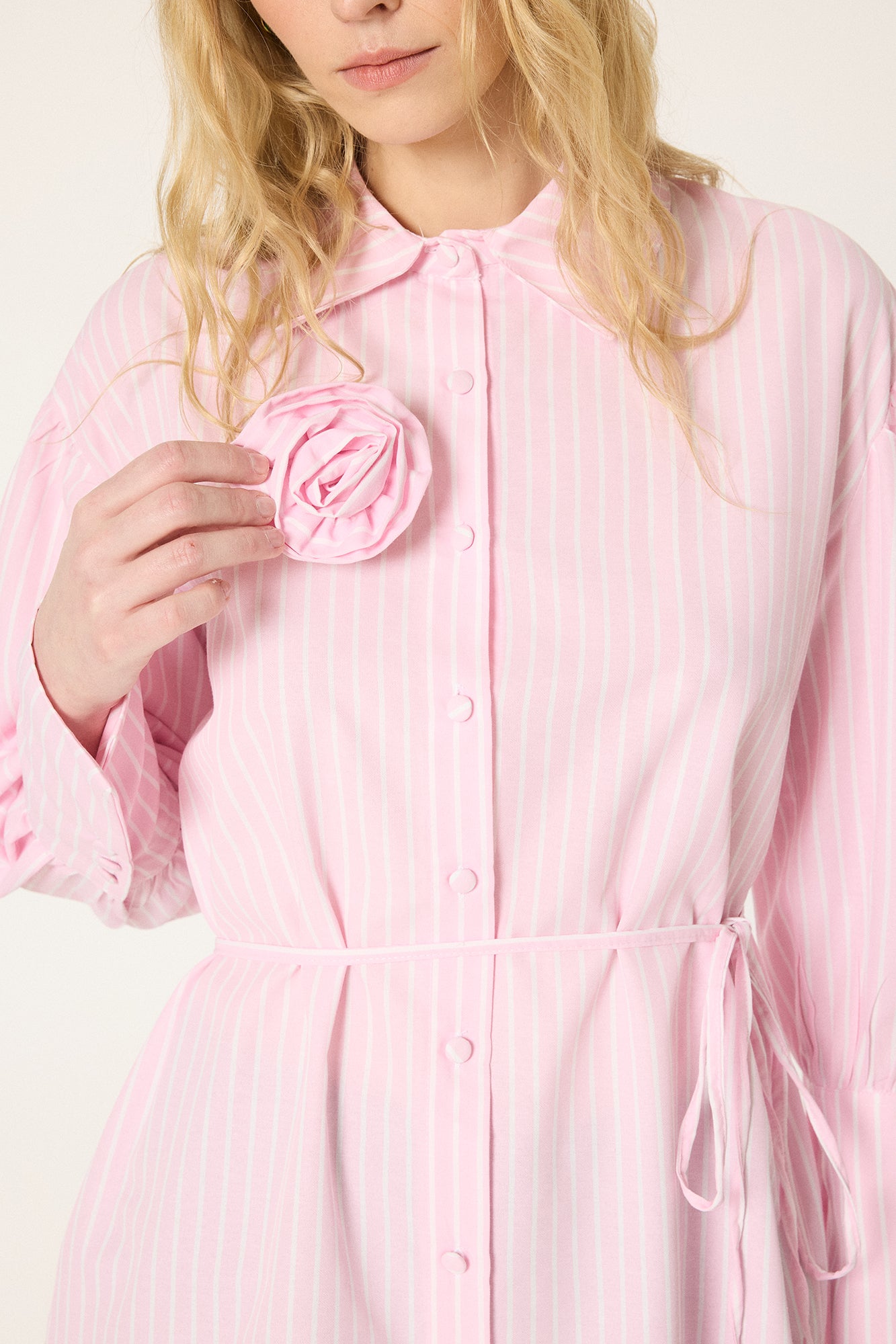 GÜL DETAYLI ÇİZGİLİ GÖMLEK