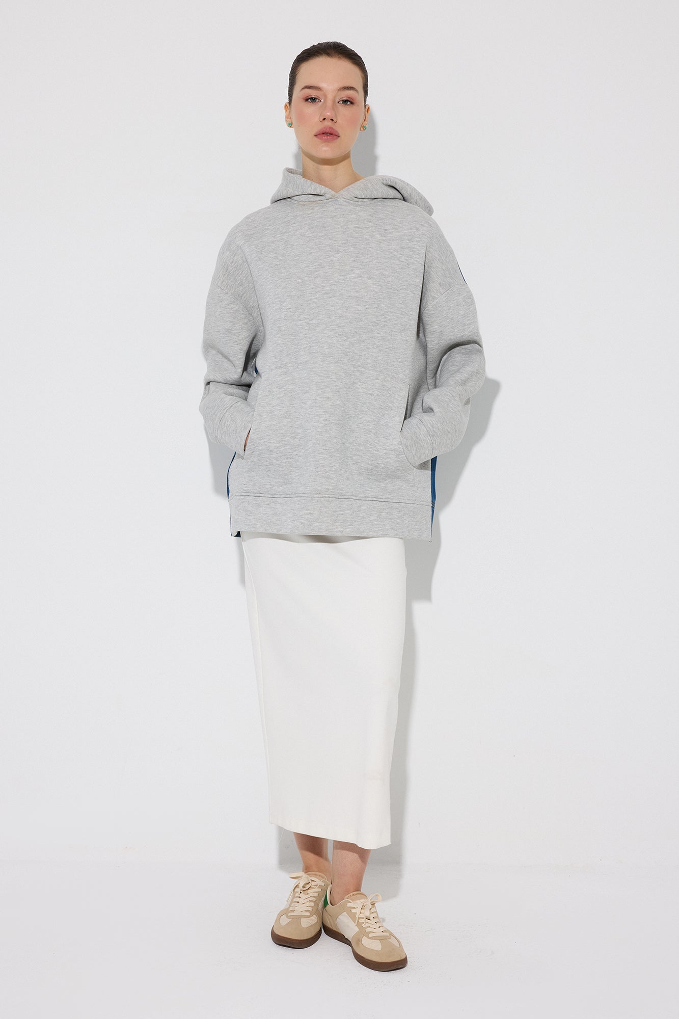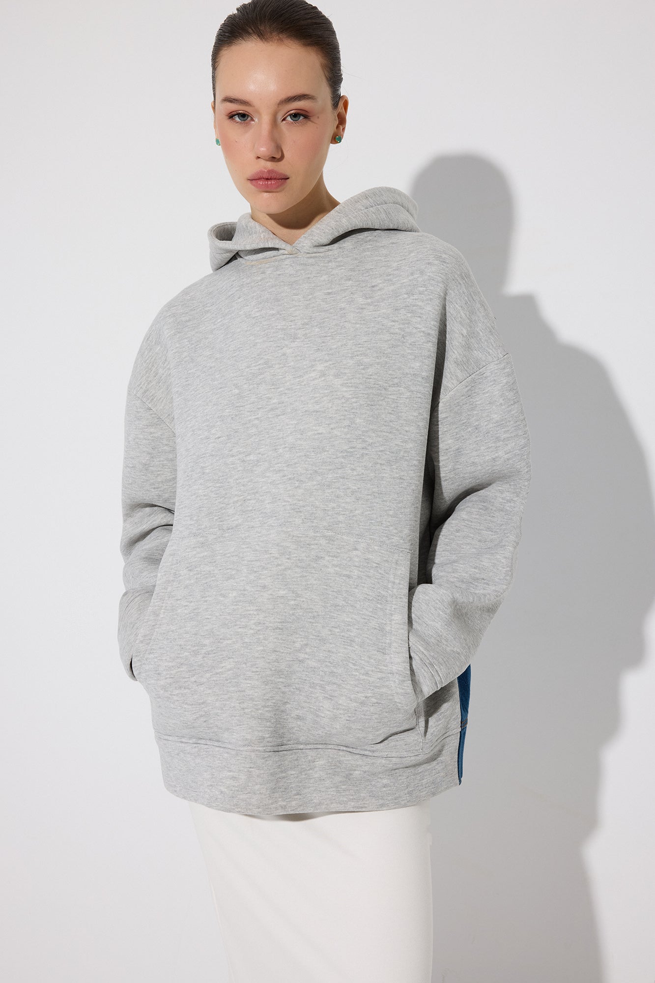 HOODED DENIM DETAILED TUNIC