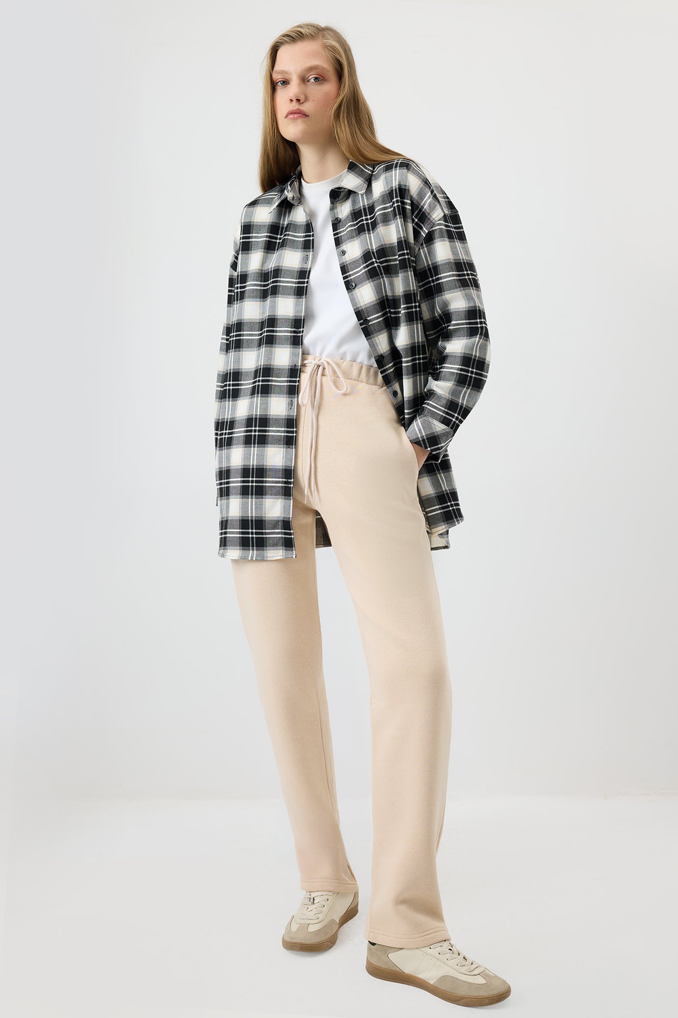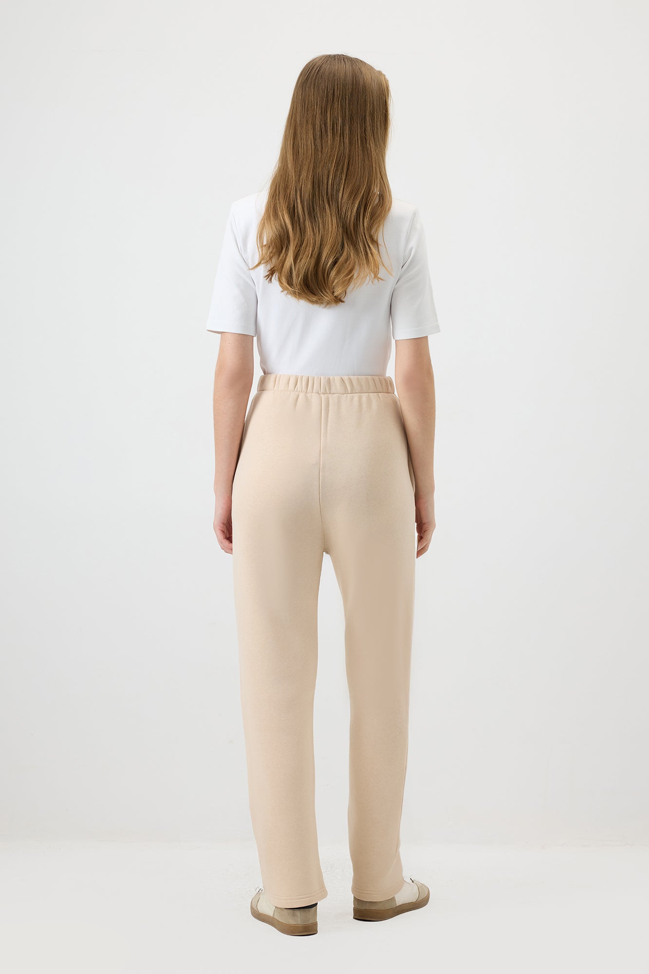Designed for effortless styling, these trousers are versatile enough to be paired with a variety of tops for both casual and laid-back occasions. The clean, neutral tone adds sophistication to the outfit, while the relaxed cut ensures comfort without compromising on style.