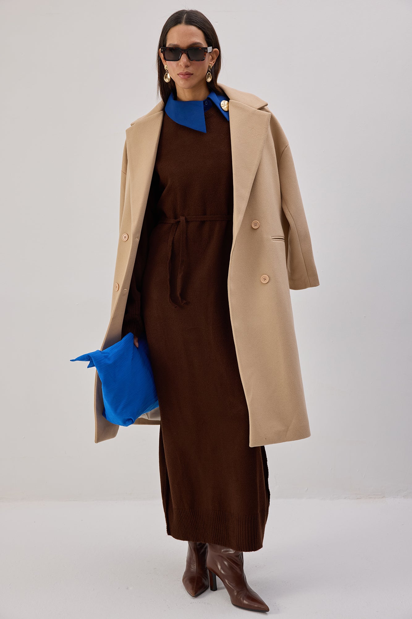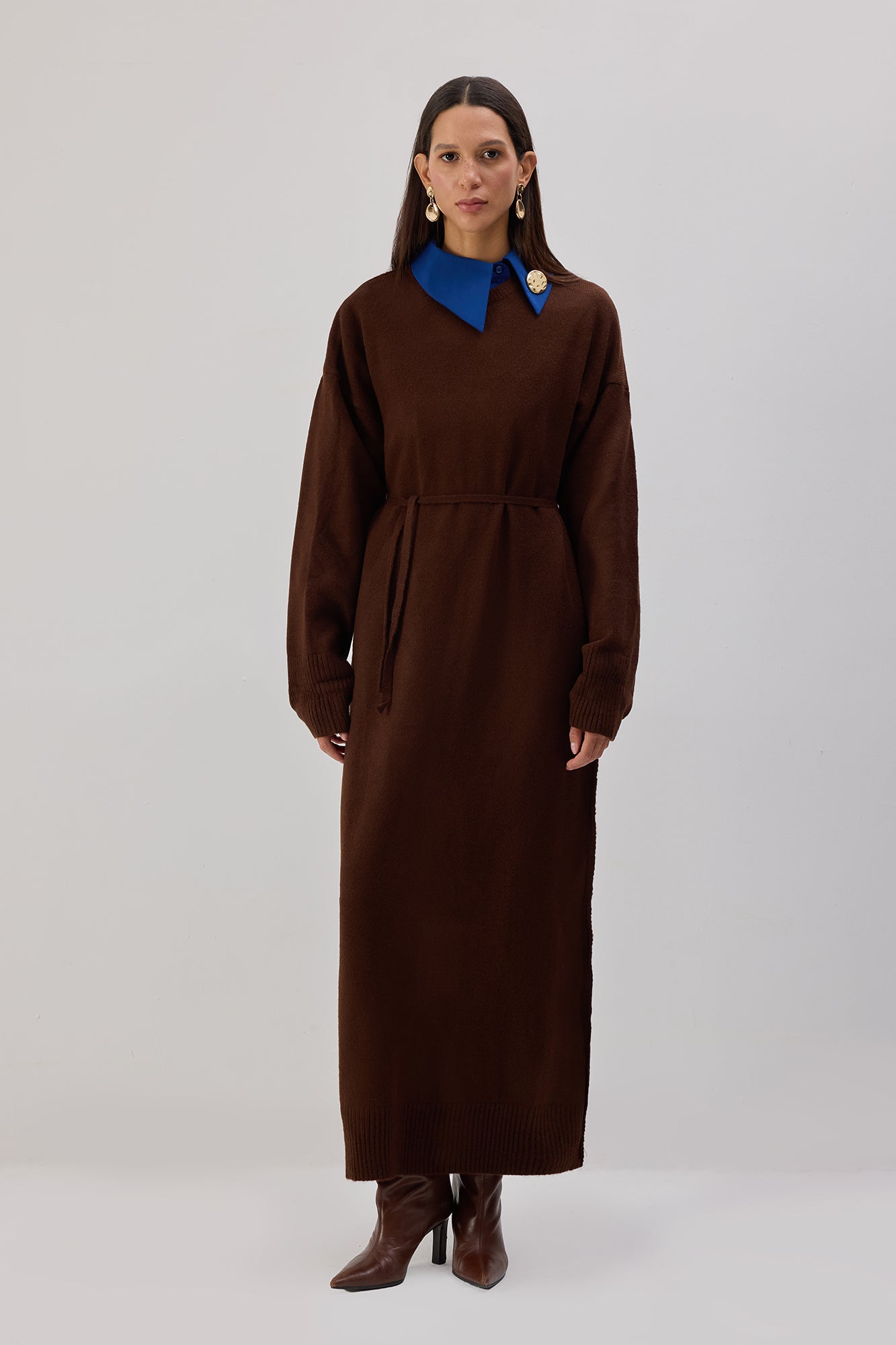 BELTED KNITTED MAXI DRESS