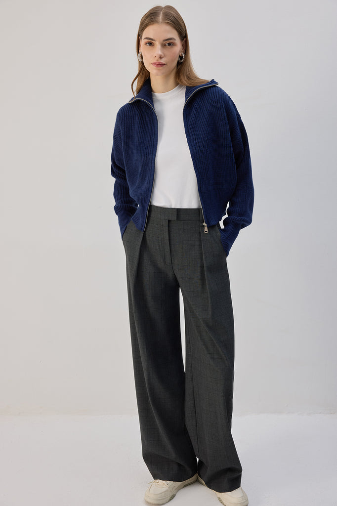 Wear it with a leather skirt for a chic, fashion-forward look, or layer it over a simple tee and jeans for a more relaxed yet stylish appearance. The button detail adds a luxurious touch, making this cardigan perfect for both everyday wear and special occasions.