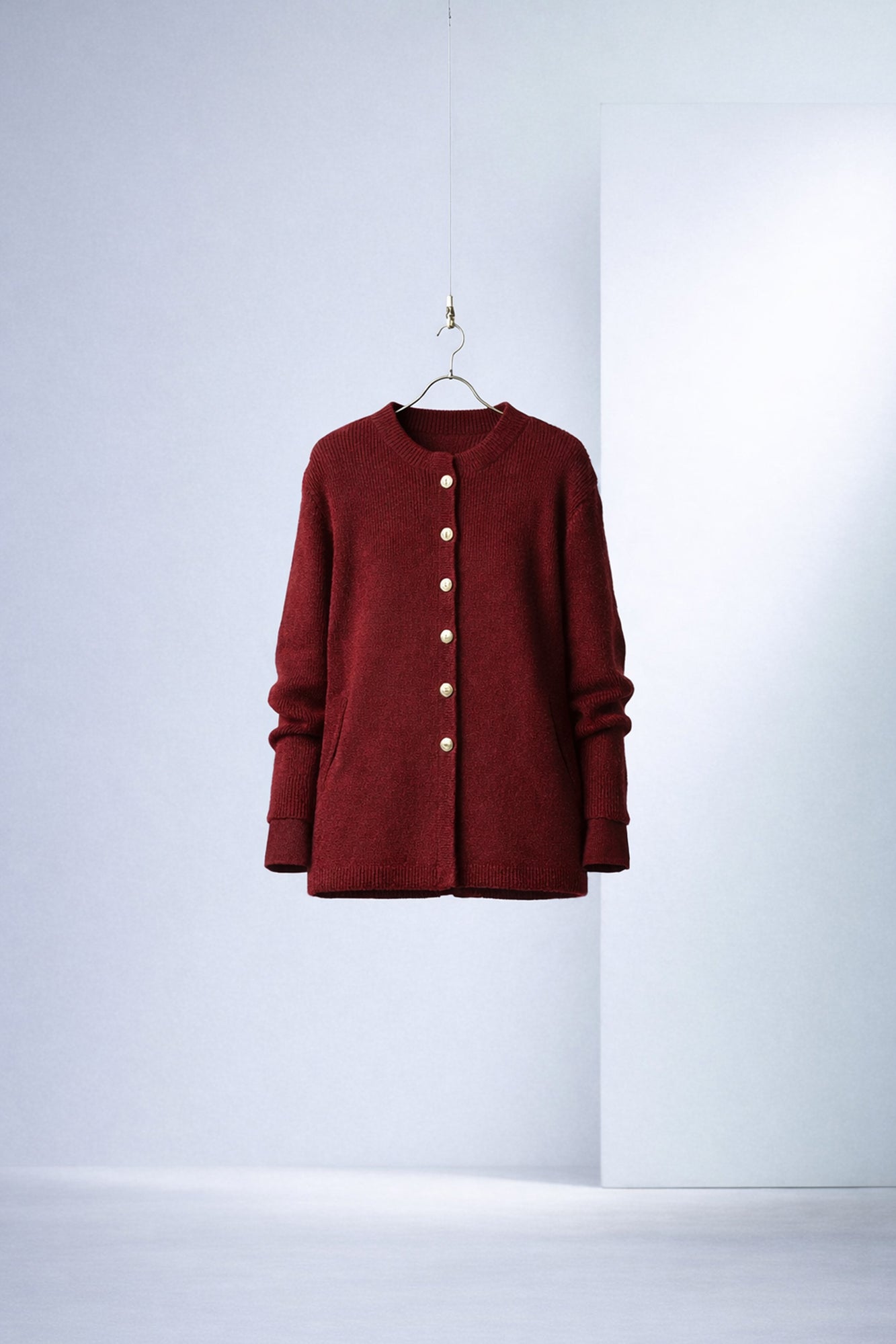 This Long Cardigan with Gold Buttons is a timeless piece that brings sophistication to your wardrobe. Featuring a deep red color with contrasting gold buttons, this cardigan blends elegance and modernity effortlessly. The cozy knit fabric ensures comfort, while the tailored fit enhances your silhouette, making it a versatile addition to both casual and dressier outfits.