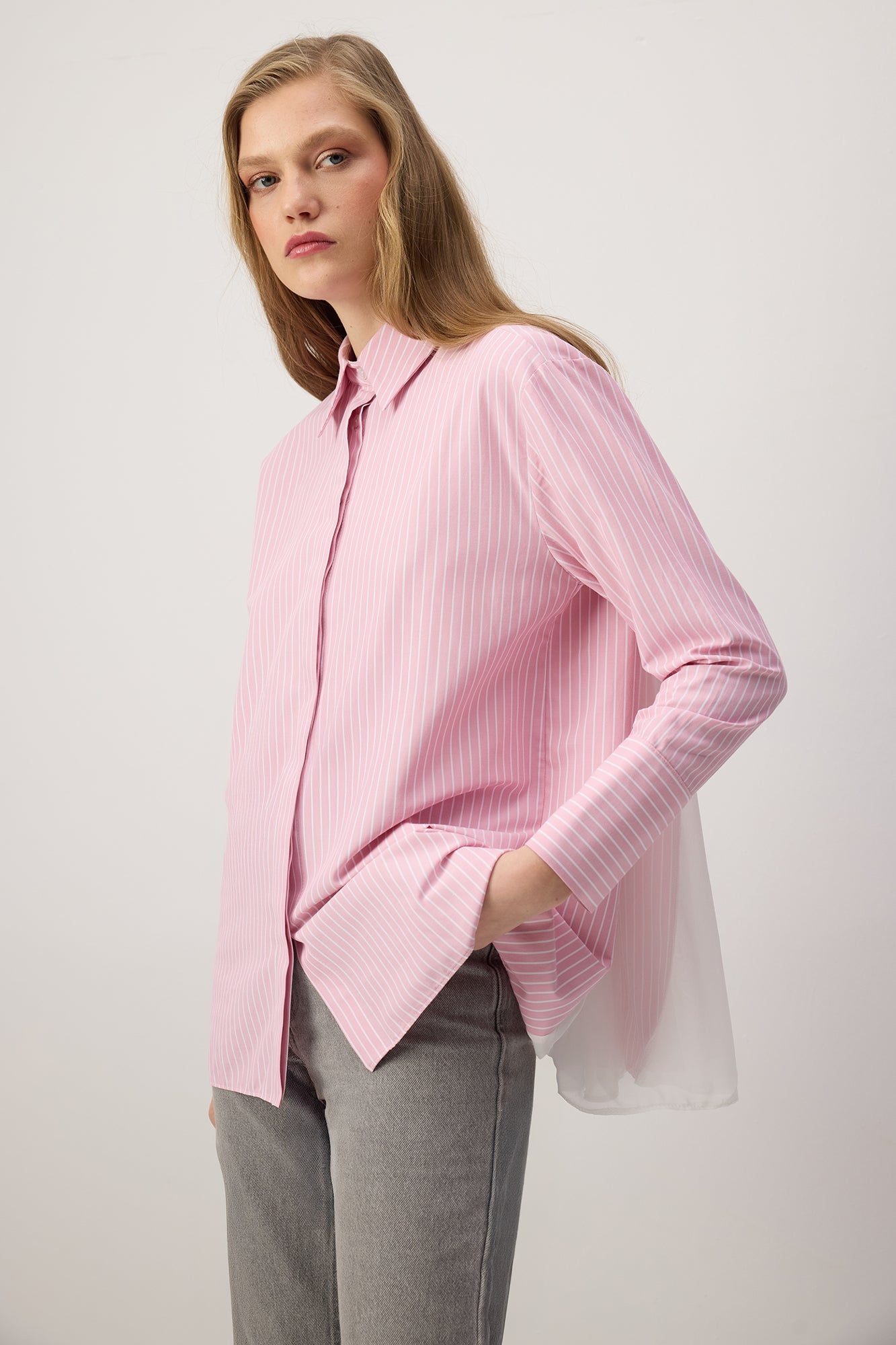 OVERSIZED STRIPED SHIRT WITH SHIFON DETAILS