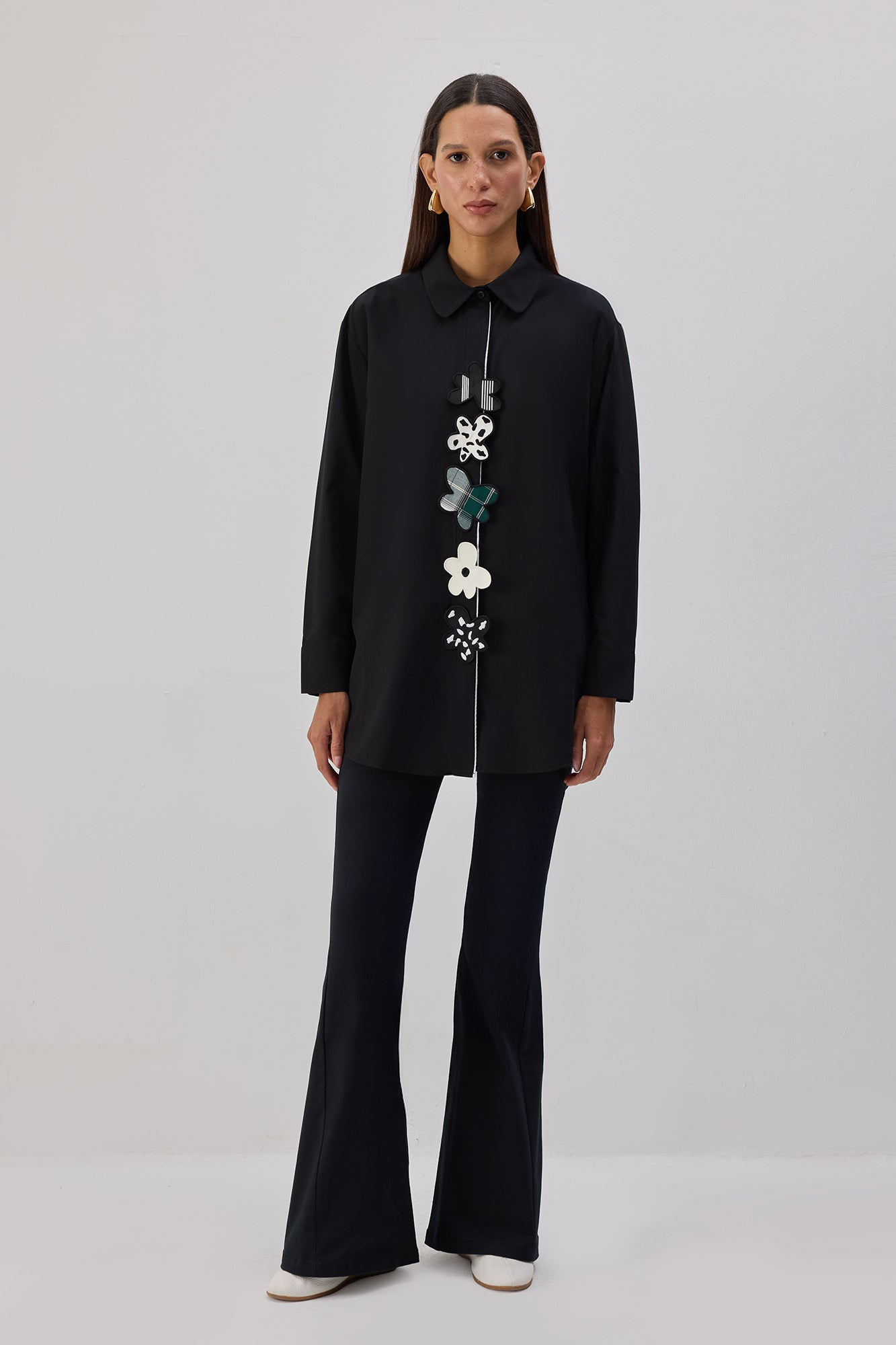 POPLIN SHIRT WITH FLORAL APPLIQUE