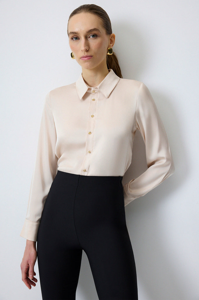 These Ribbed Crepe Trousers are a perfect blend of comfort and sophistication. The black crepe fabric offers a luxurious texture, complemented by the subtle ribbed design that adds depth and interest to the trousers. Featuring an elastic waistband for a relaxed, easy fit, these trousers pair effortlessly with both casual and formal styles. In this look, they are matched with a white collared shirt for a clean, crisp aesthetic, creating a stylish and contemporary outfit. Ideal for both work and weekend wear, these trousers will quickly become a staple in your wardrobe.