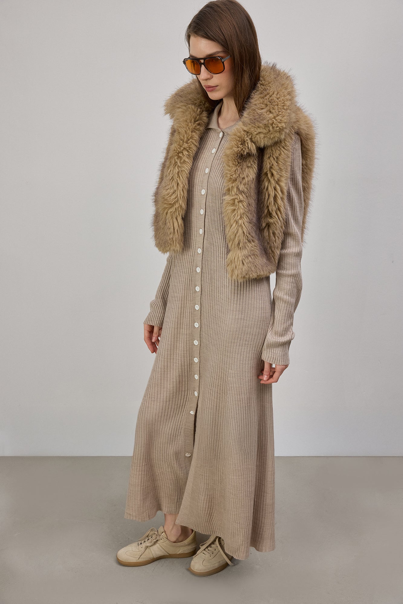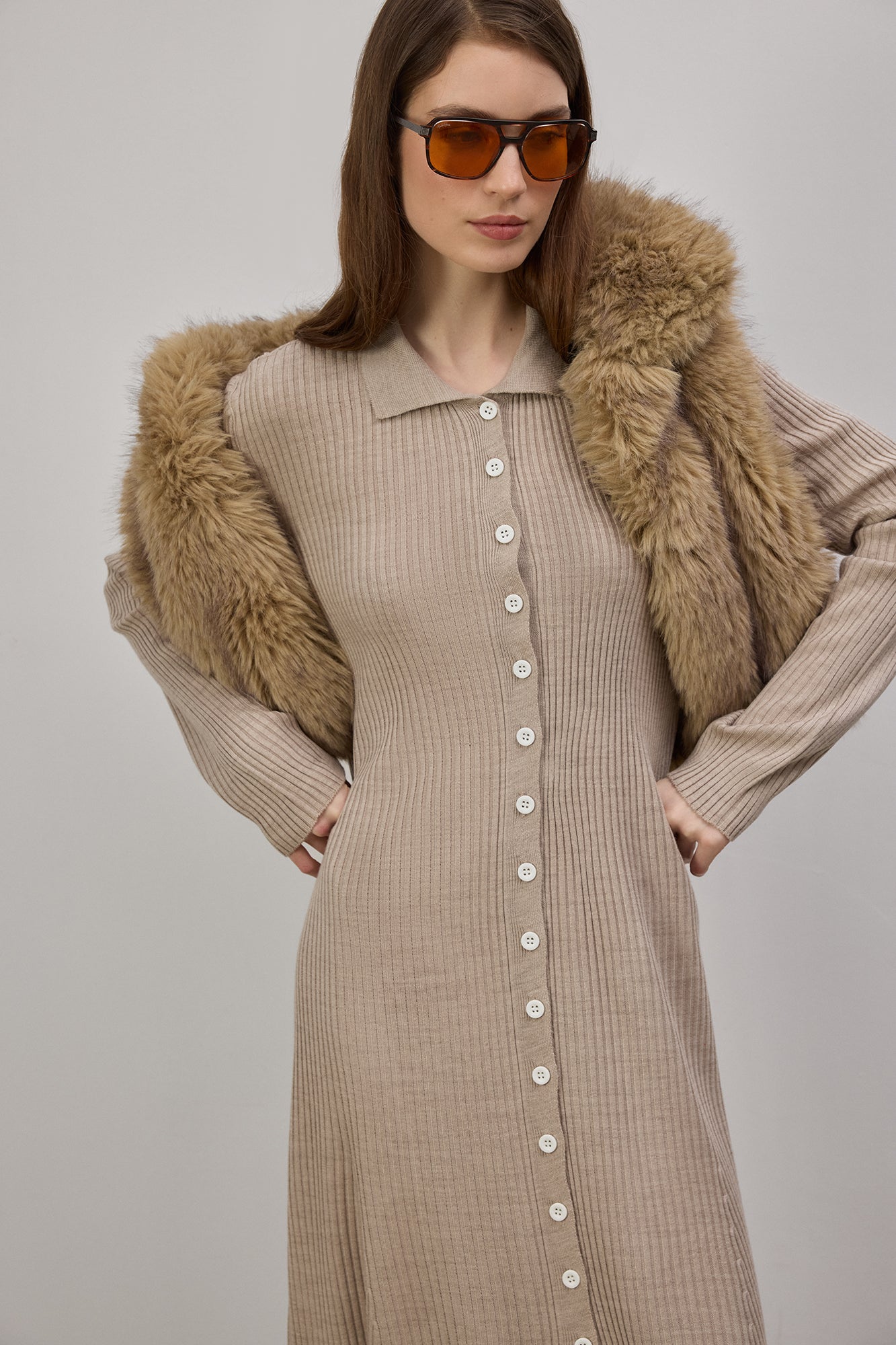 SHIRT COLLAR BUTTONED KNITTED DRESS