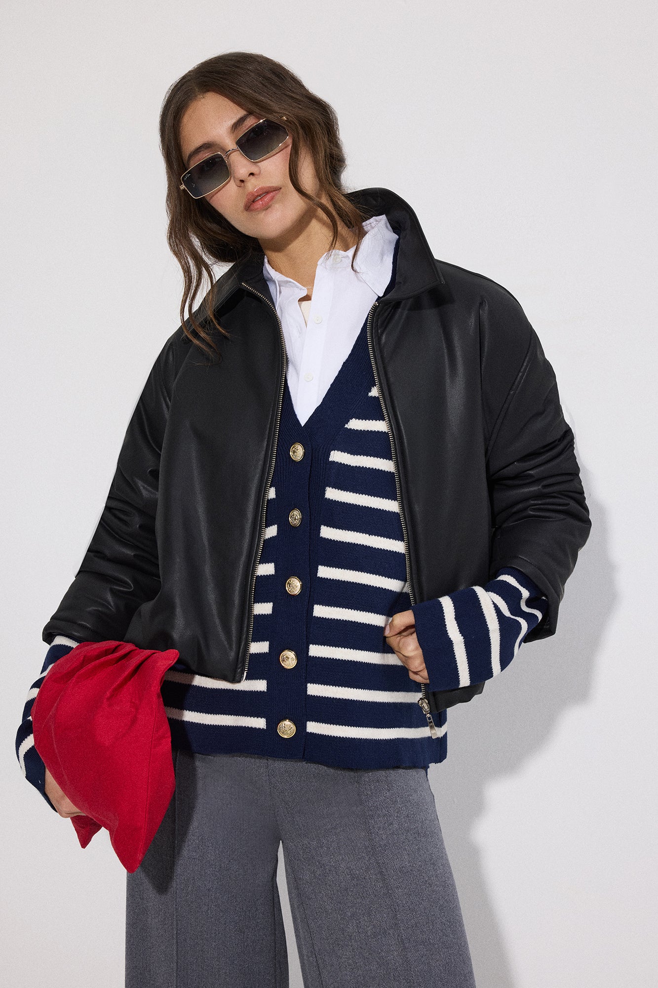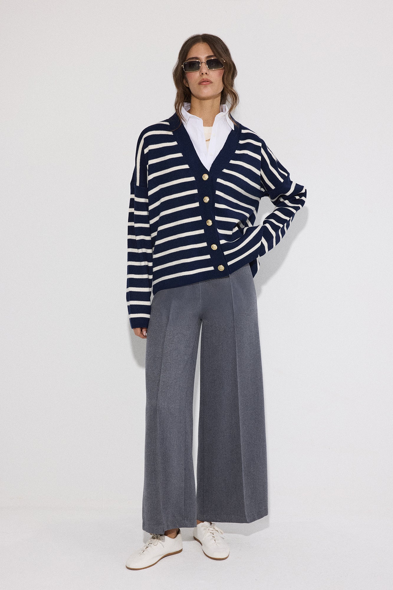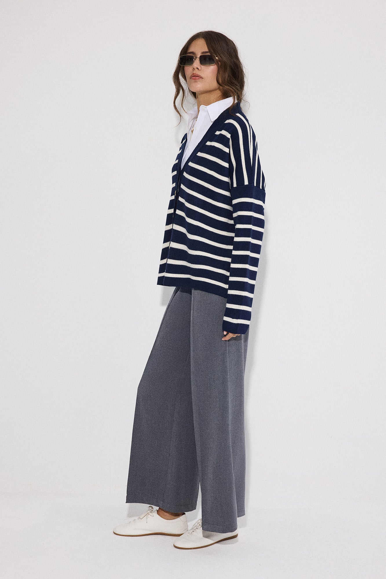 SHIRT DETAILED STRIPED CARDIGAN