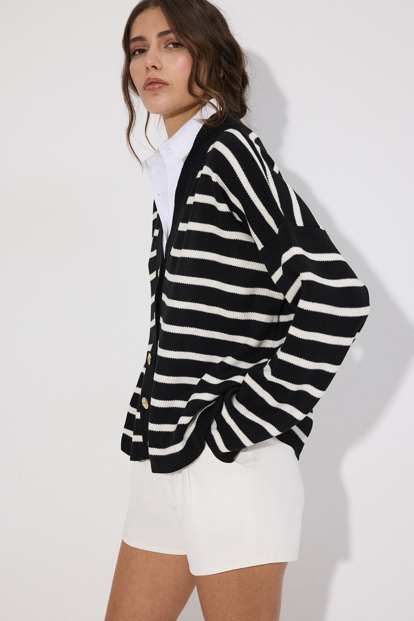 SHIRT DETAILED STRIPED CARDIGAN