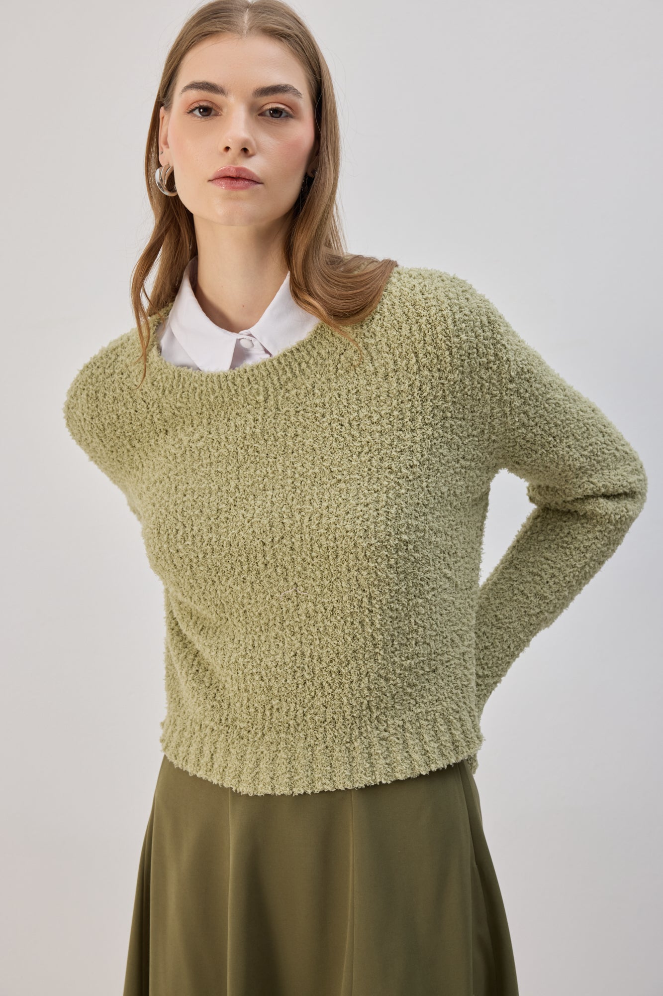 SOFT TEXTURED CROP KNIT SWEATER