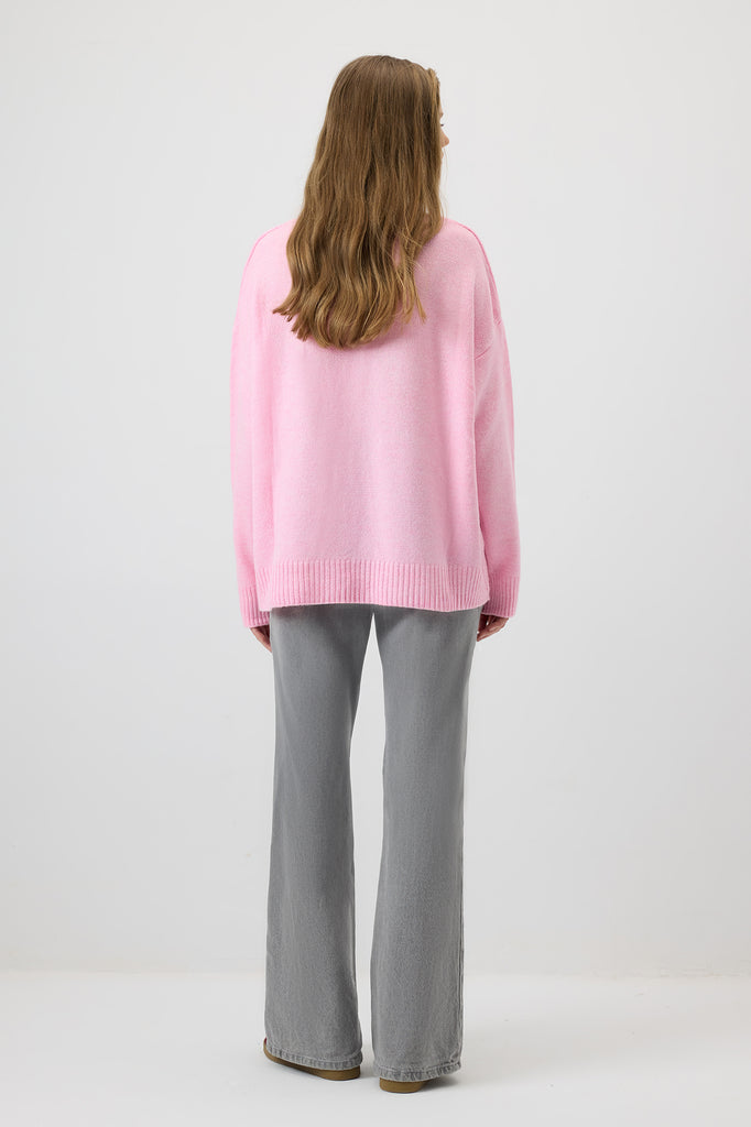 This Solid Color Oversize Sweater in a soft pink hue is perfect for cozy yet stylish days. Its relaxed, oversized fit offers maximum comfort while maintaining a chic, casual look. The ribbed hem adds a touch of texture, and the sweater’s lightweight construction ensures it’s perfect for layering or wearing on its own. Paired with jeans or leggings, it’s a versatile piece that exudes a laid-back, modern vibe. Whether you're lounging at home or out for a casual outing, this sweater will keep you both comfy and stylish.