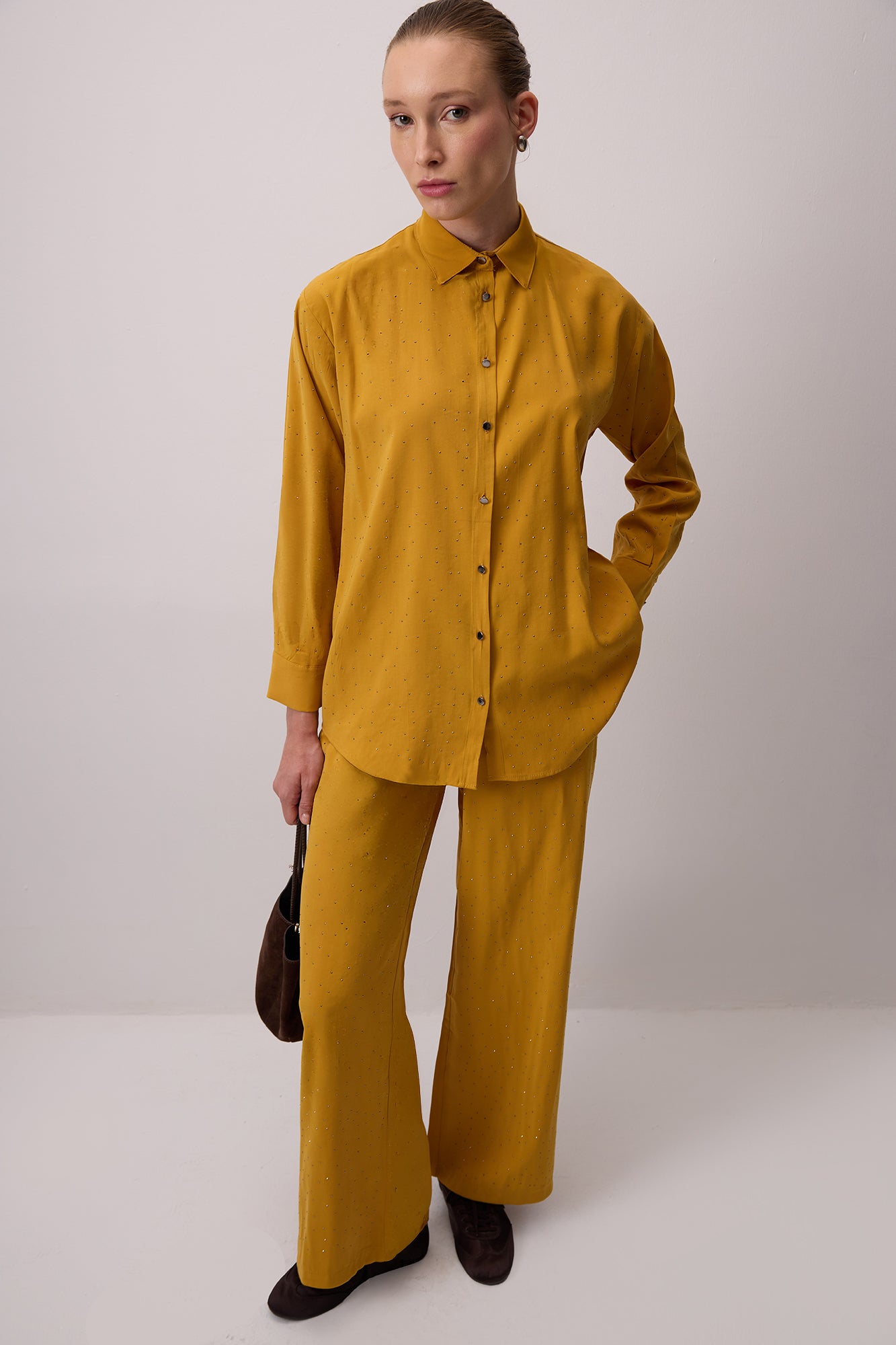 STONE EMBROIDERED SHIRT AND TROUSERS SET