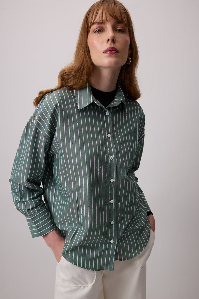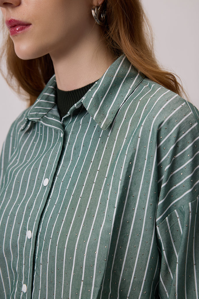 STONE EMBROIDERED STRIPED POPLIN SHIRT