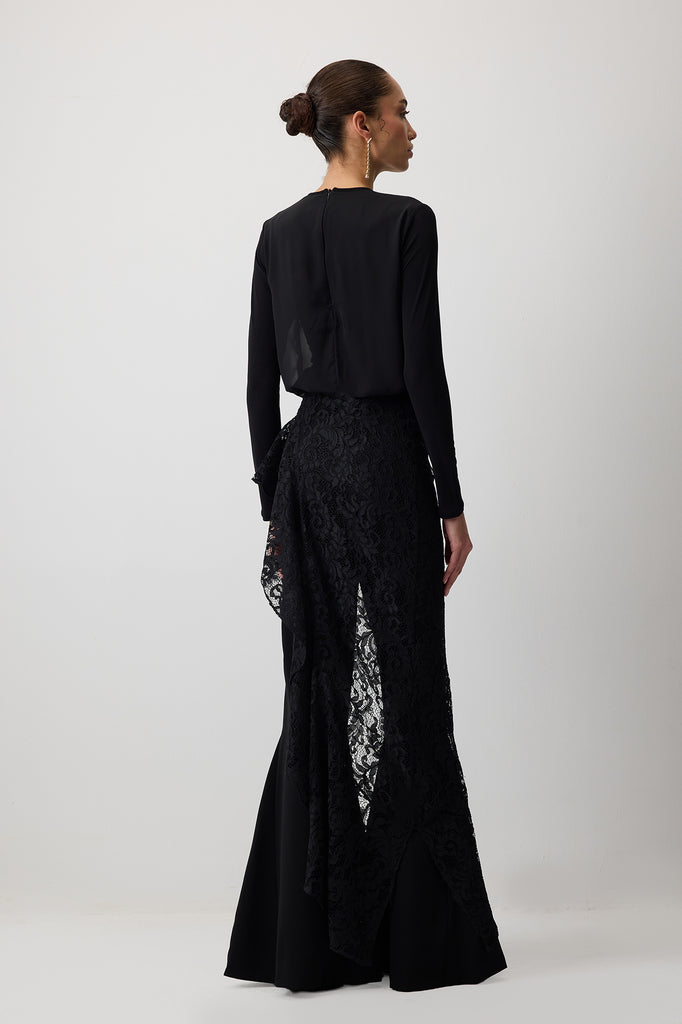 RUCHED CHIFFON SNAP BODYSUIT