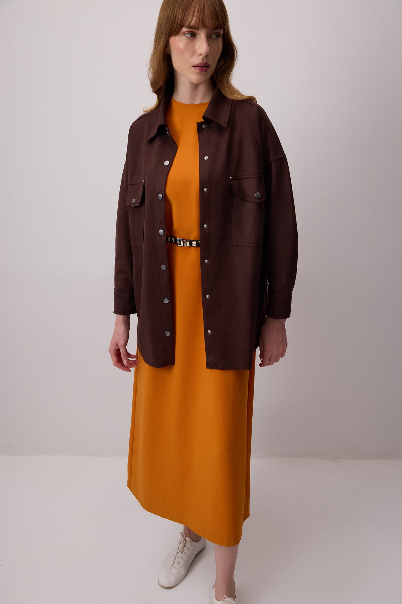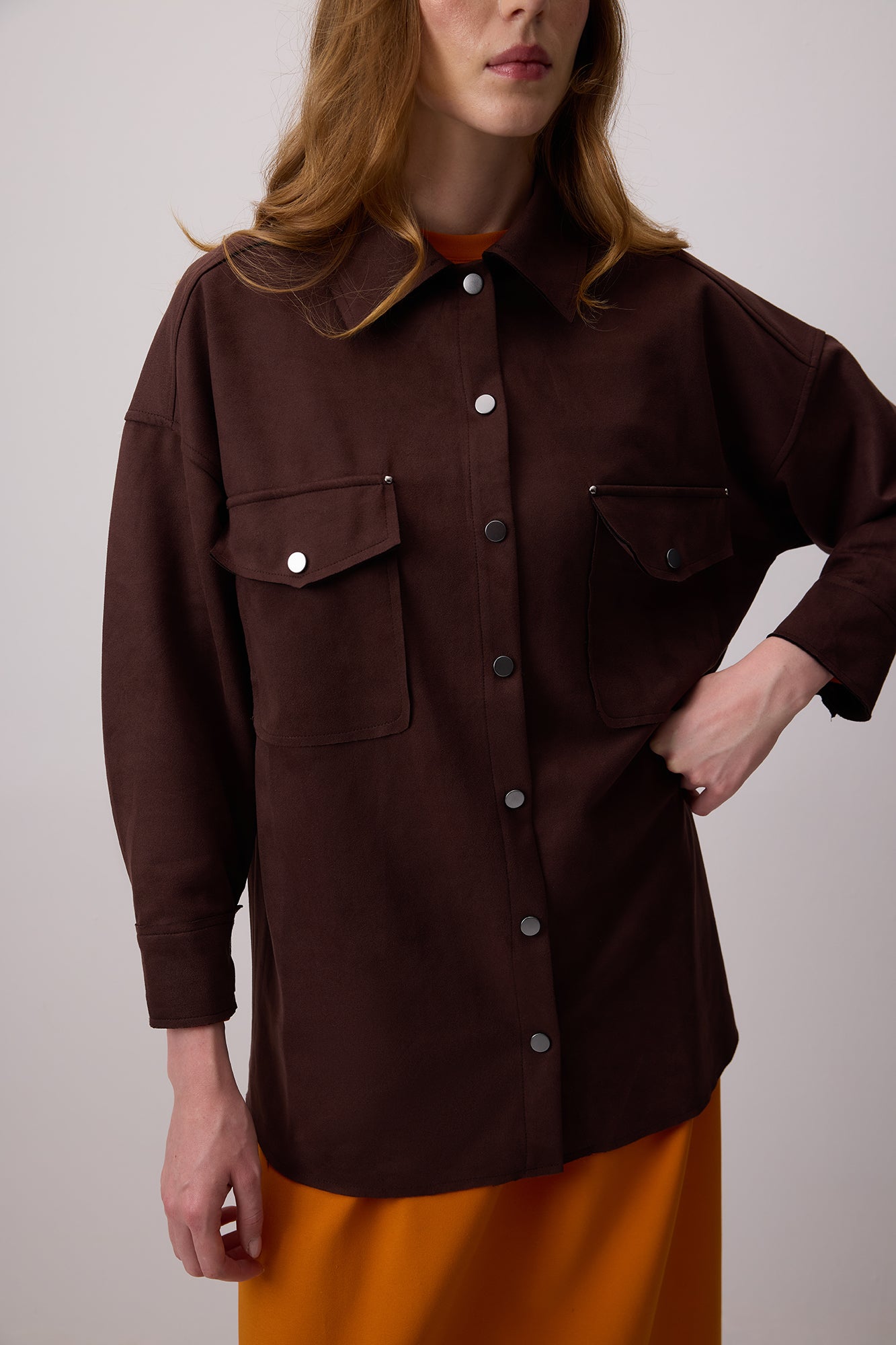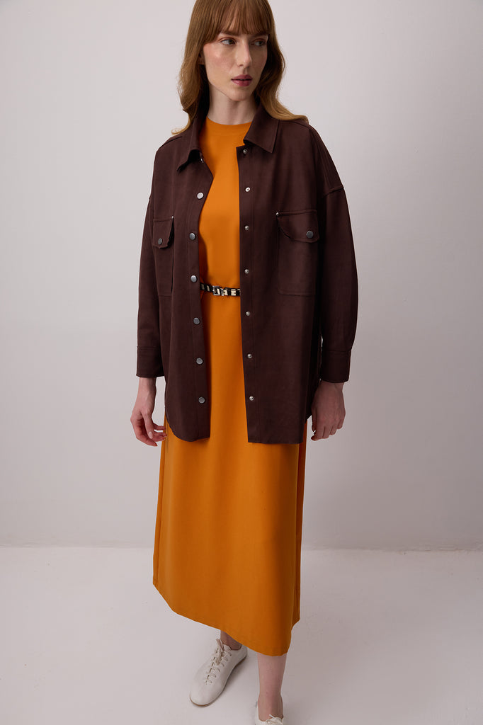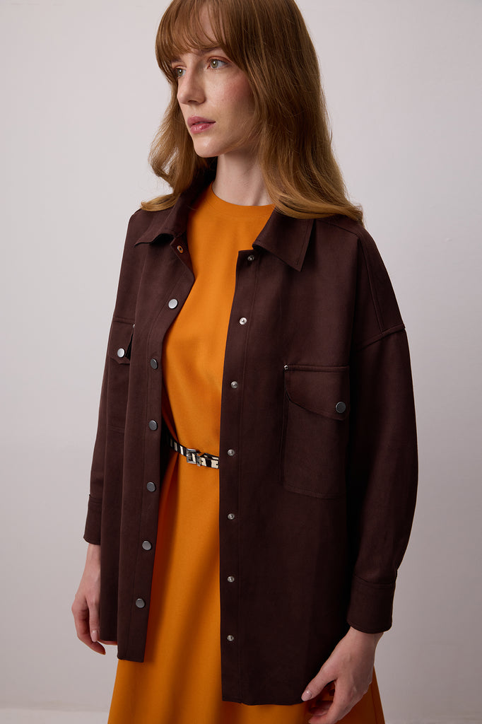 SUEDE SHIRT WITH FRONT POCKETS