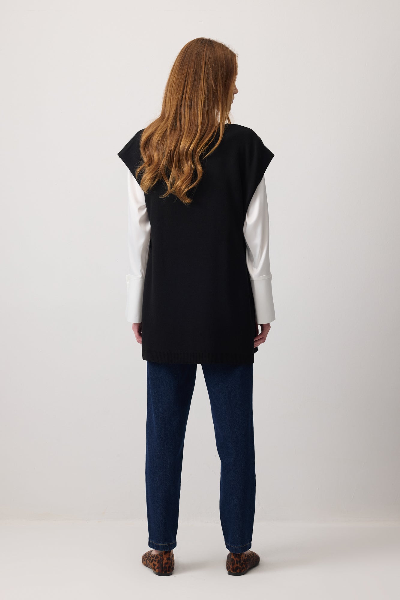 V-NECK KNIT SWEATER VEST WITH SIDE